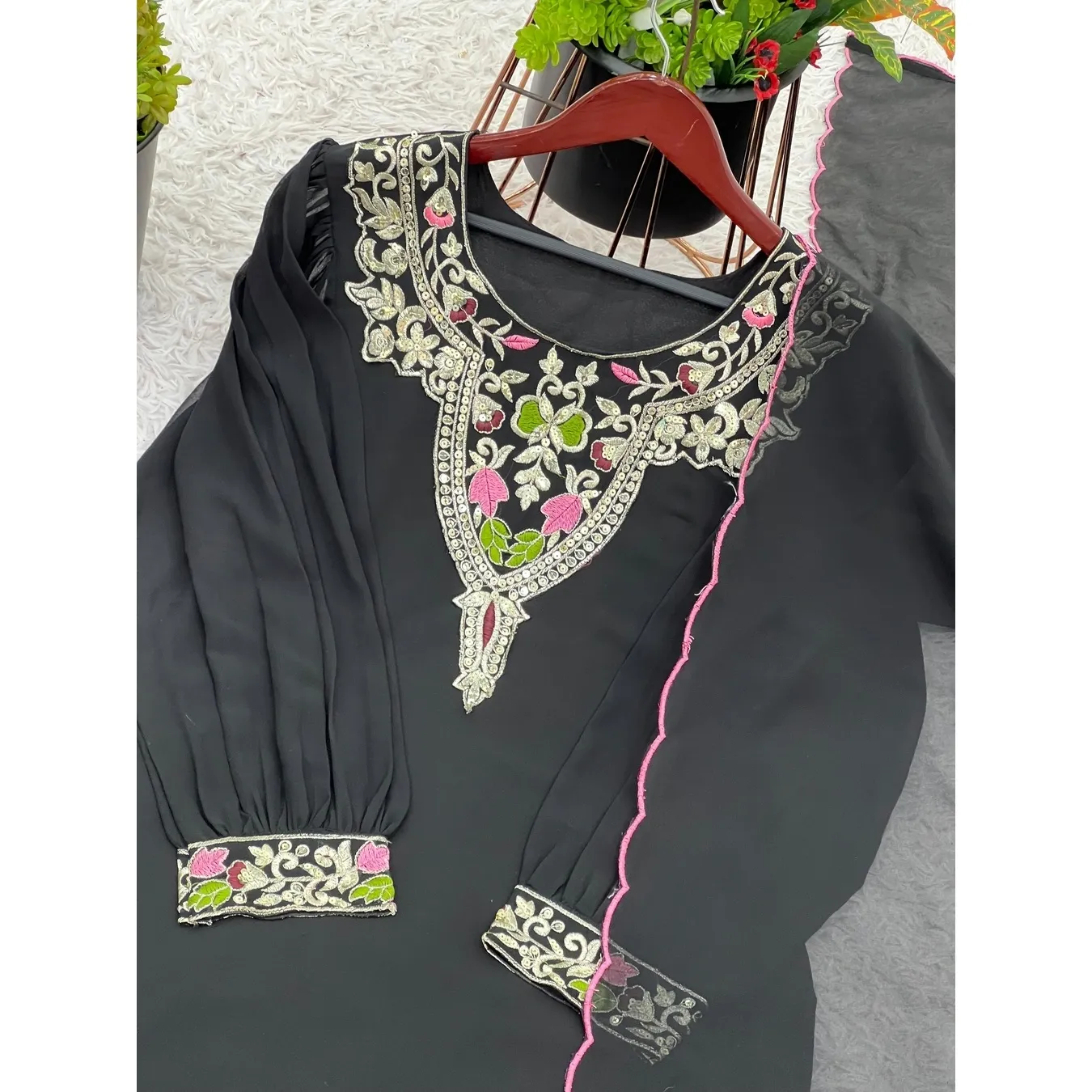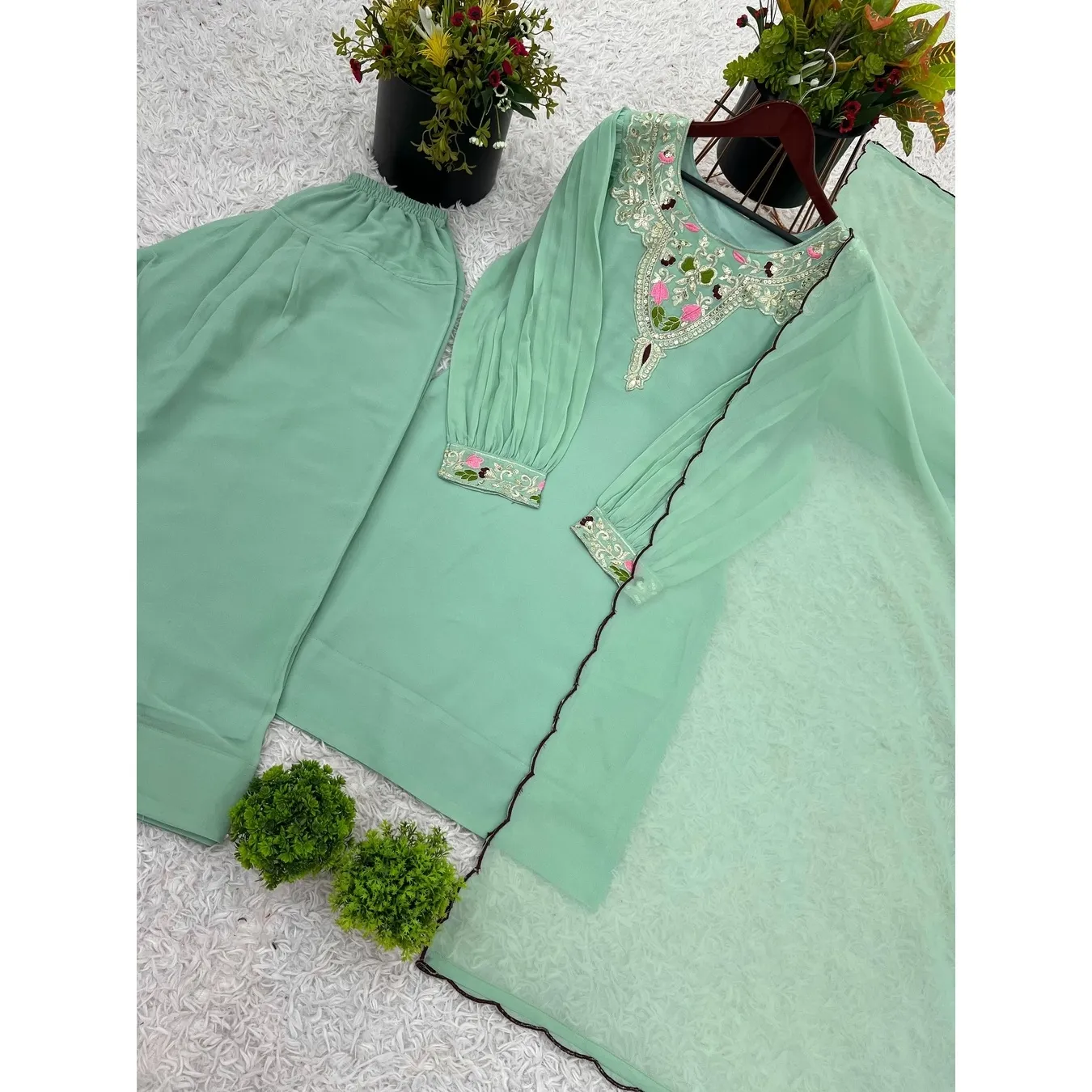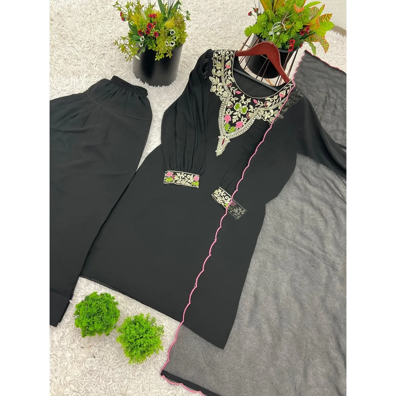 | Catalog Name | Designer Faux Georgette Sharara Set with Dupatta & Embroidery |