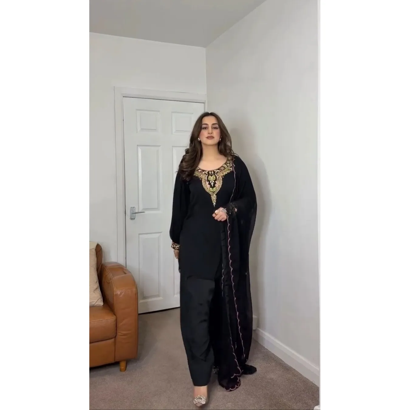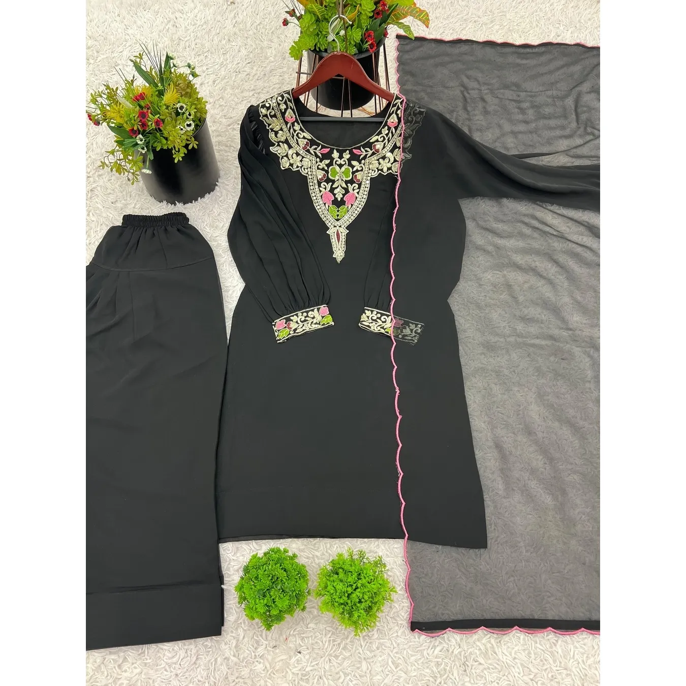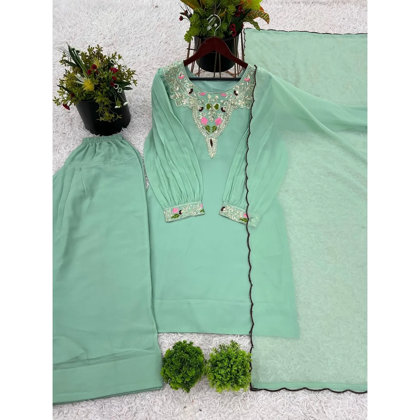 | Catalog Name | Designer Faux Georgette Sharara Set with Dupatta & Embroidery |