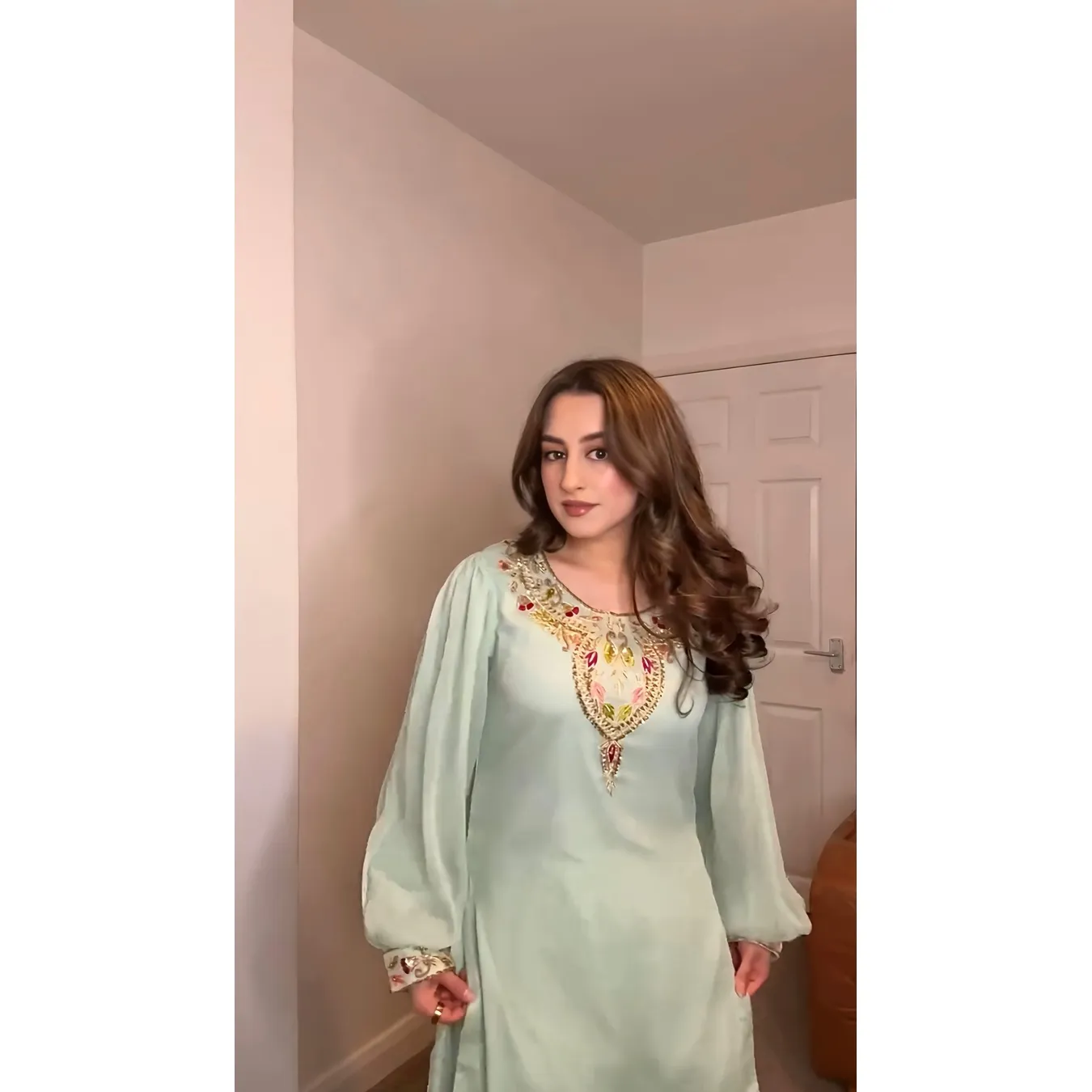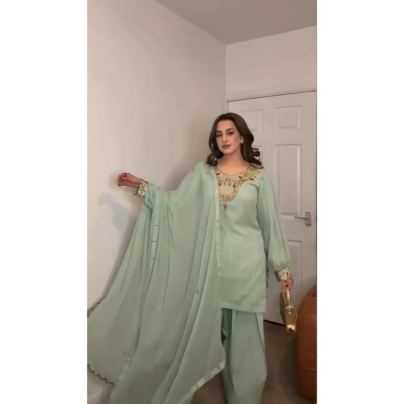 | Fabric Description | Top : Heavy Faux Georgette With 5mm Embroidery Sequence Work With Fency Sleeve Top Inner : Heavy Micro Cotton Plazzo : Heavy Faux Georgette Cencas Farchi Bottom Pent Inner : Heavy Micro Cotton Dupatta : Heavy Georgette And Lace Border |