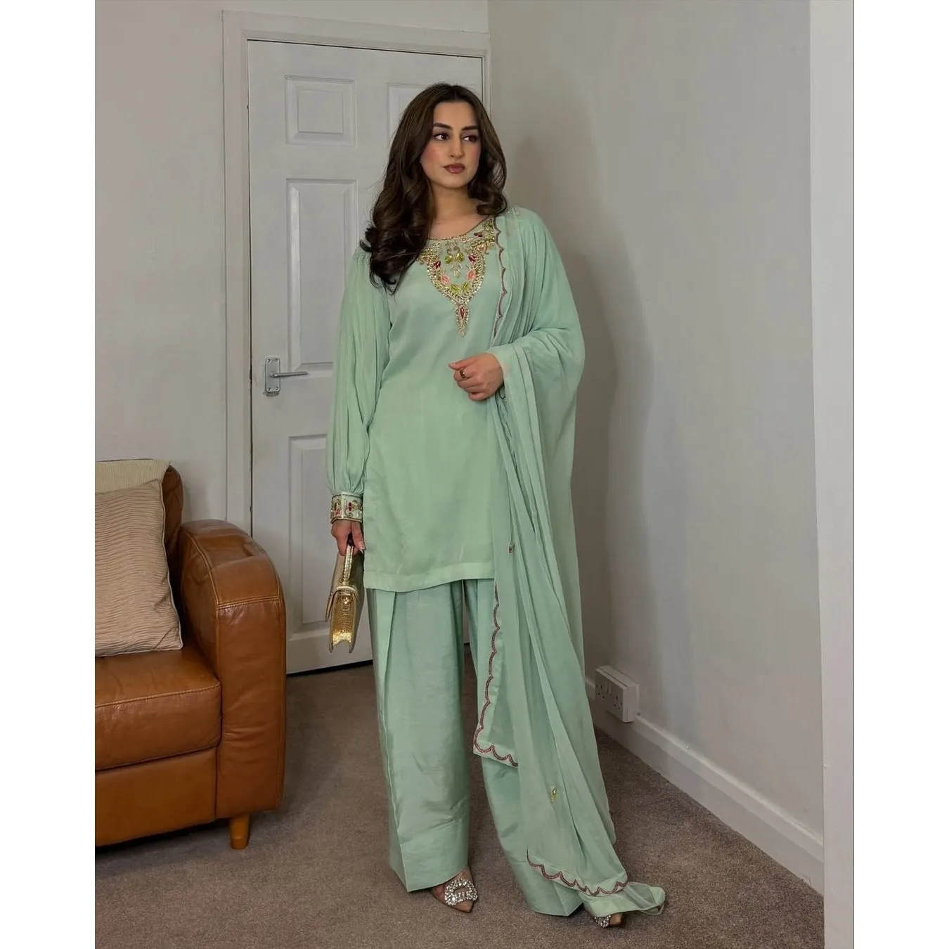 Presenting New Designer Party Wear Look Top-Plazzo and Dupatta With Heavy Embroidery Work