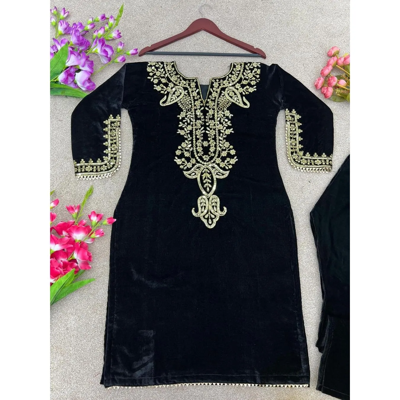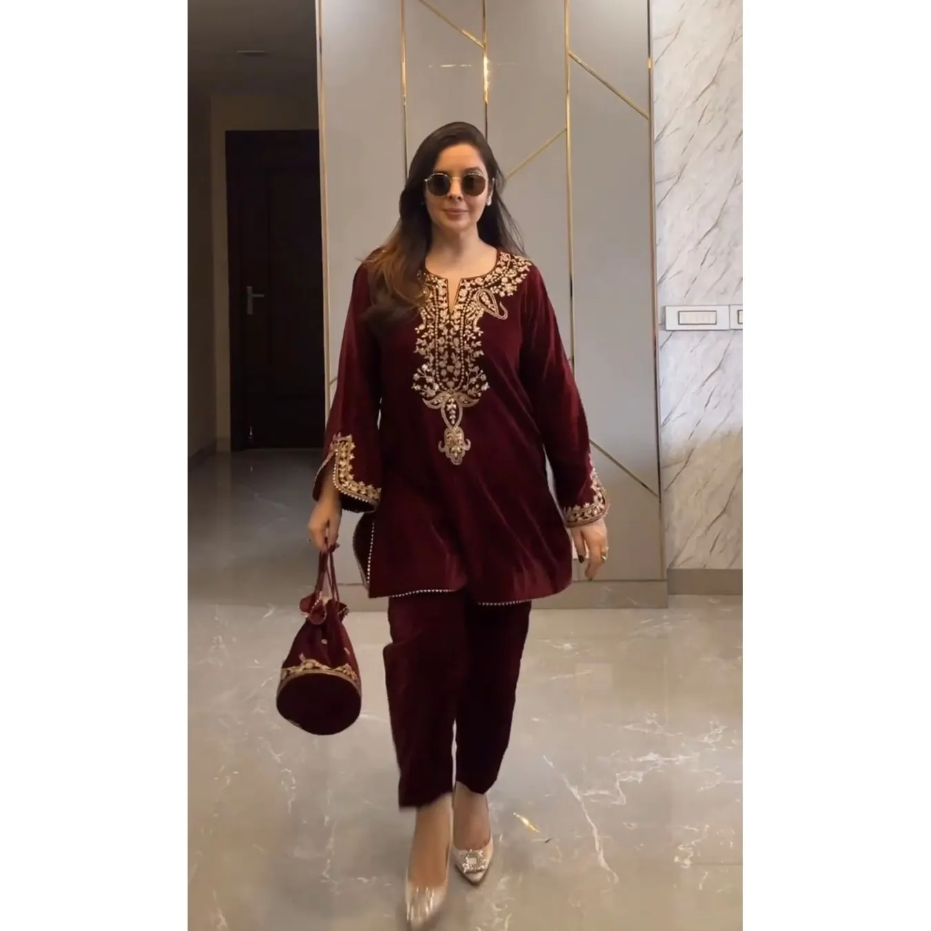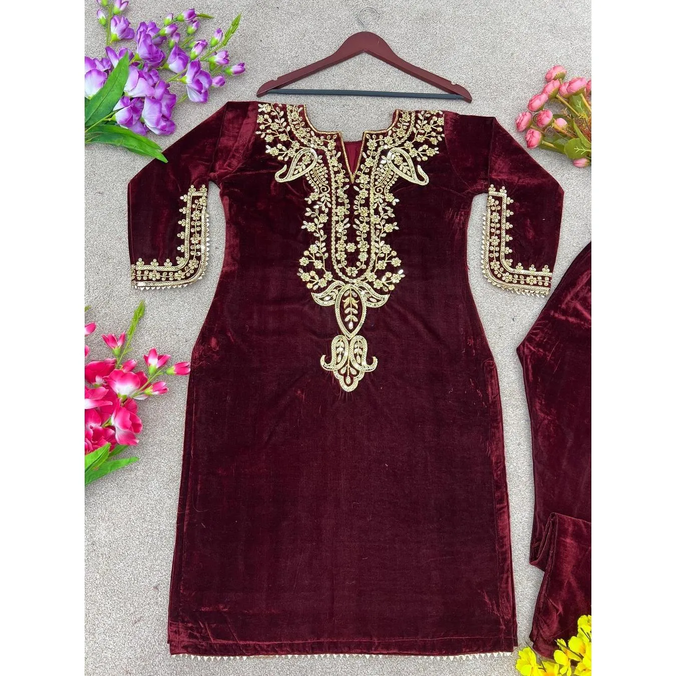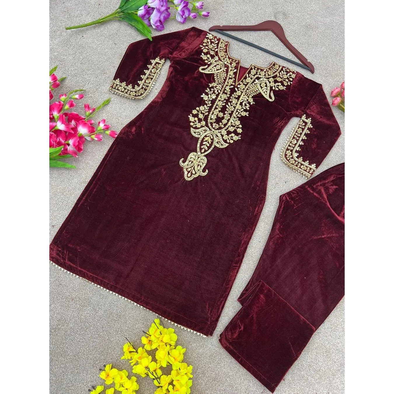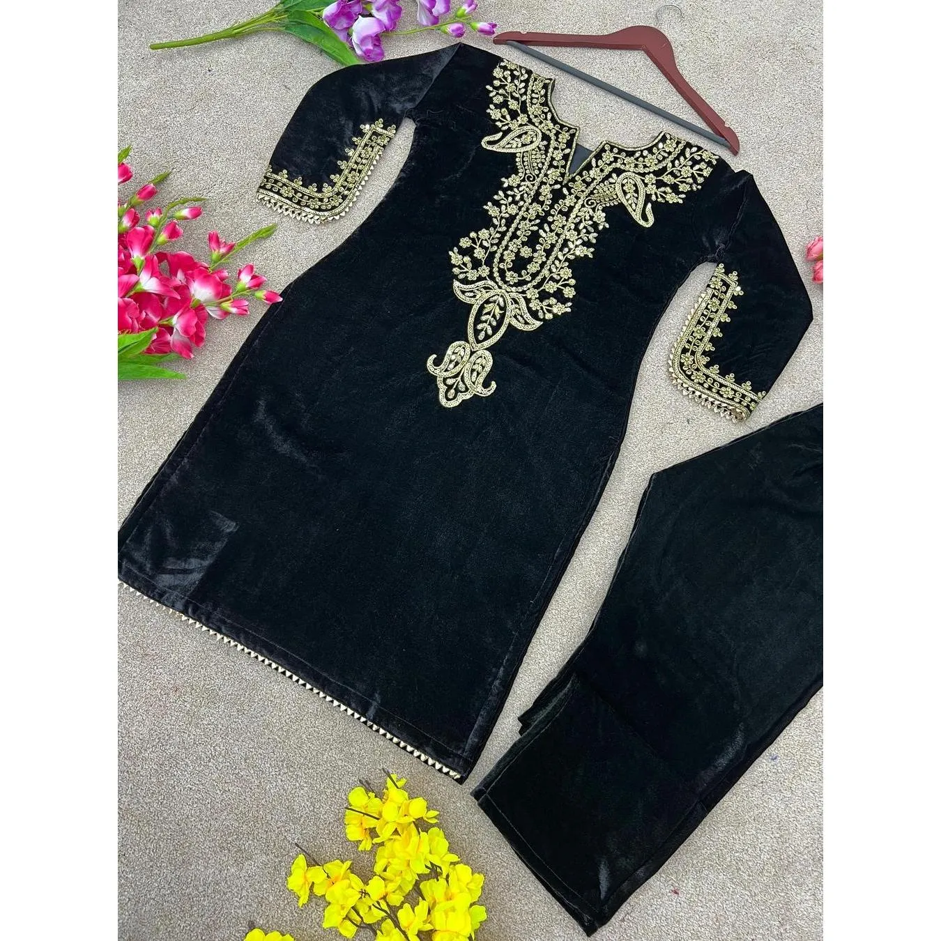 | Catalog Name | Designer Velvet Embroidered Top & Bottom Set |