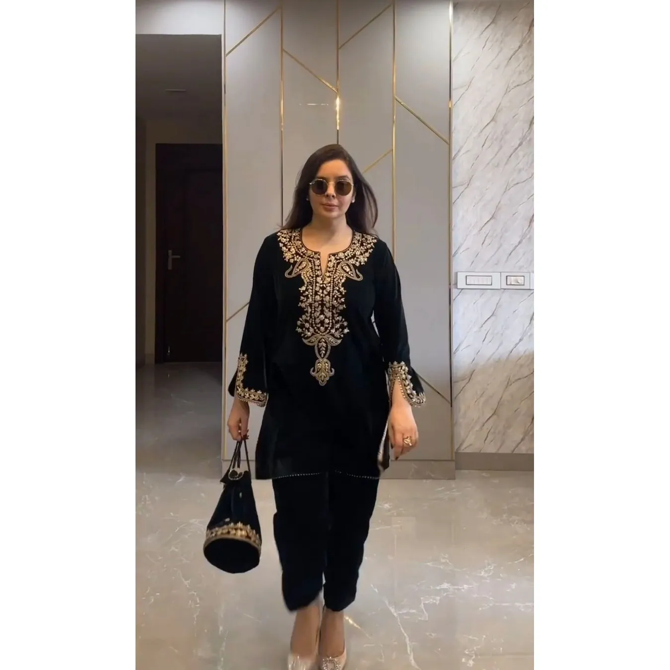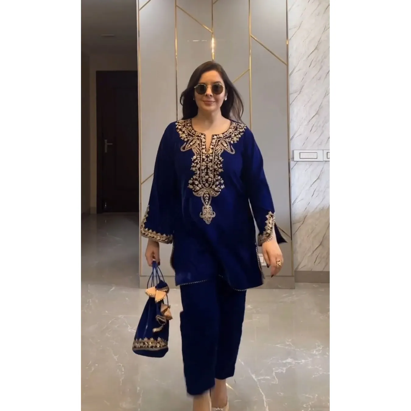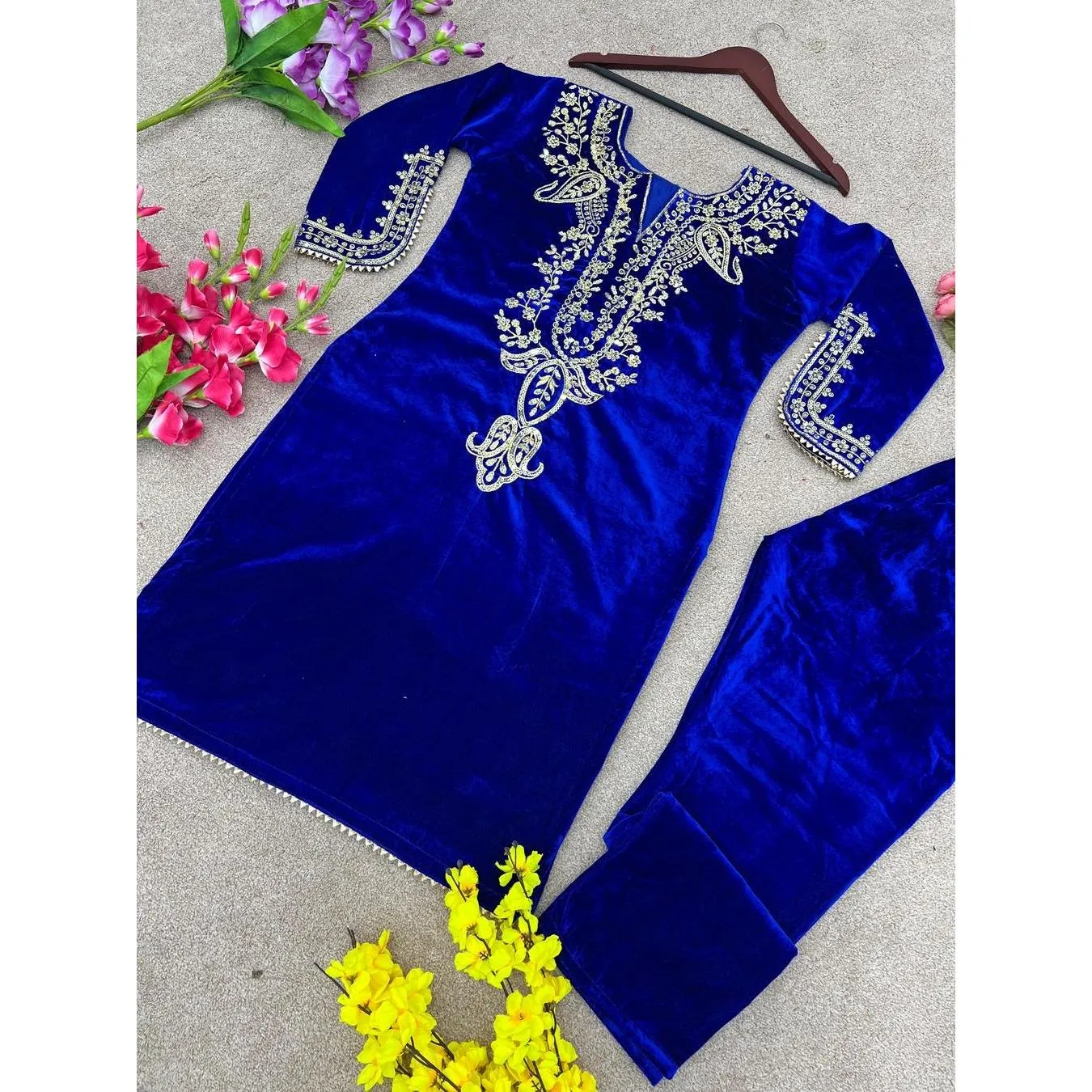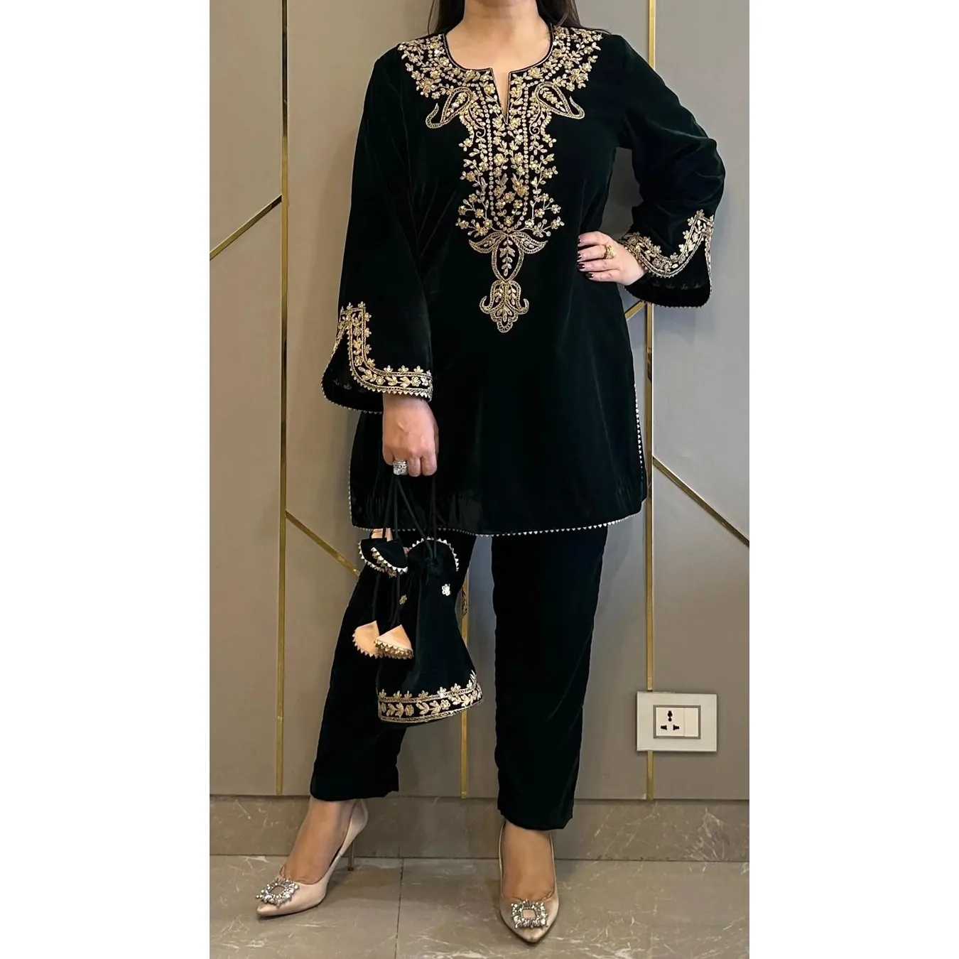 | Catalog Name | Designer Velvet Embroidered Top & Bottom Set |
