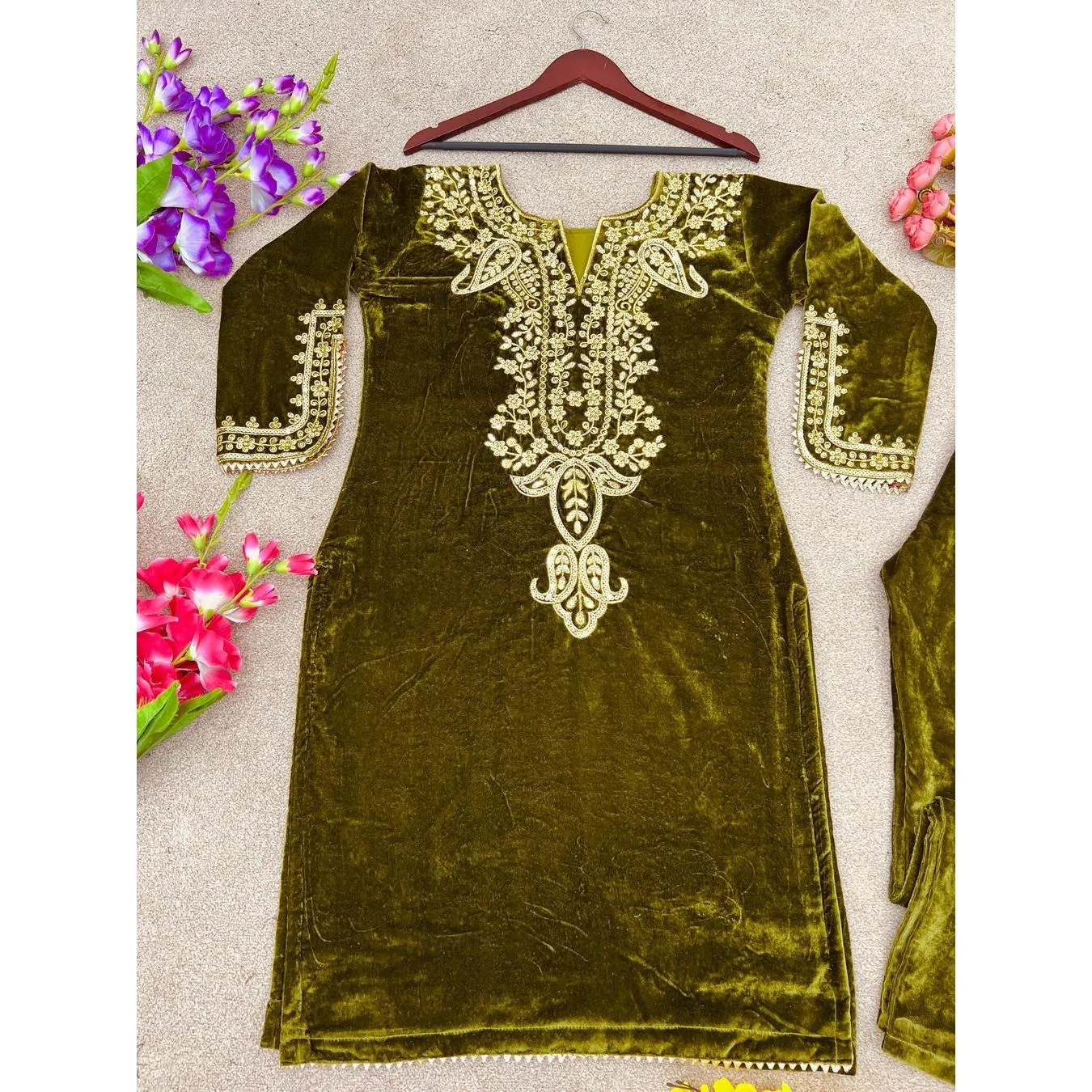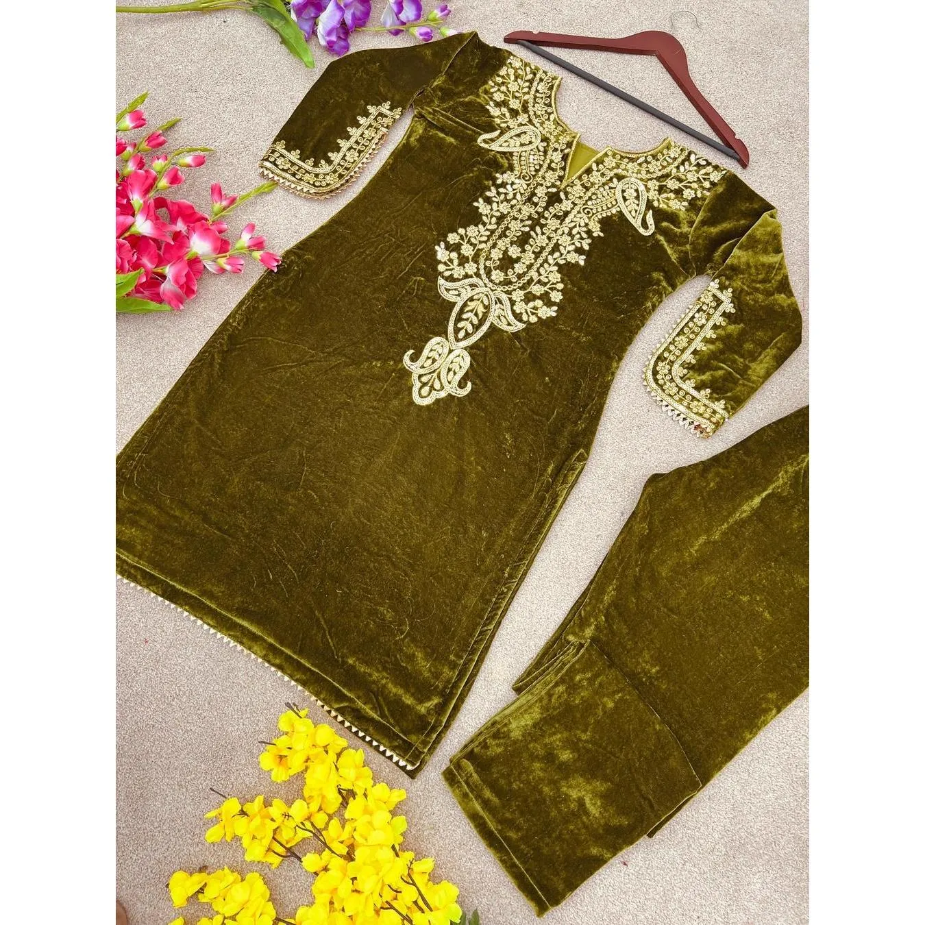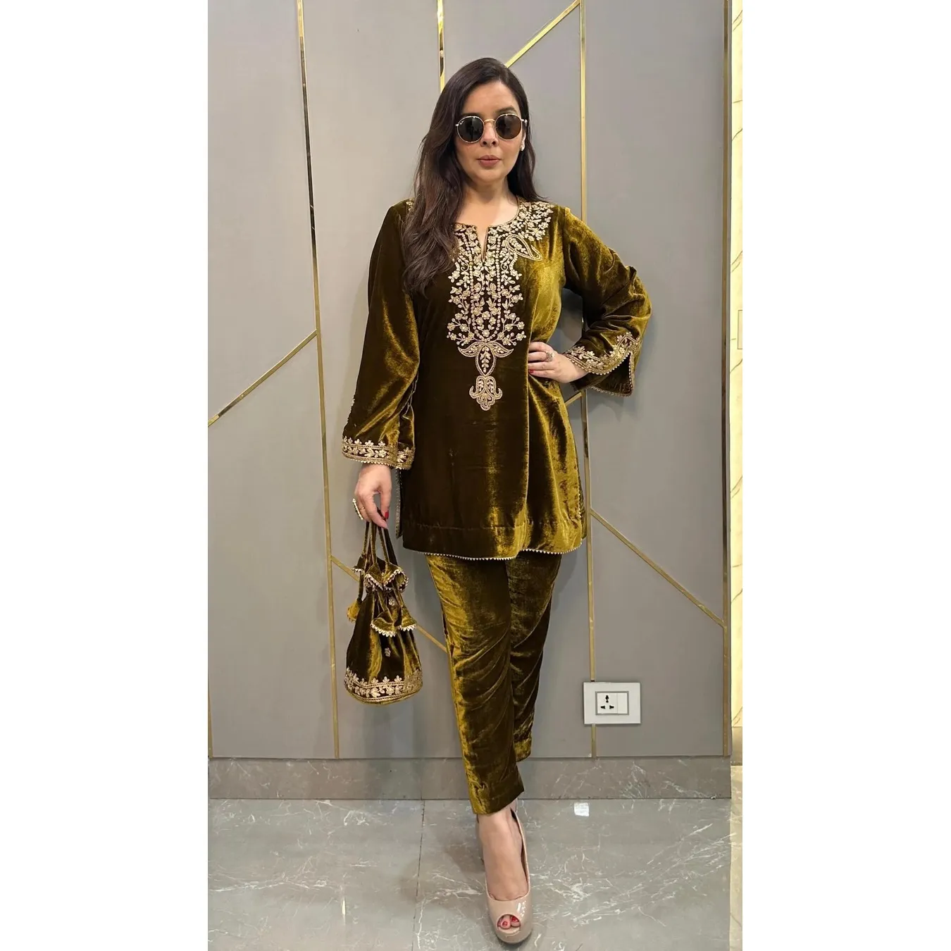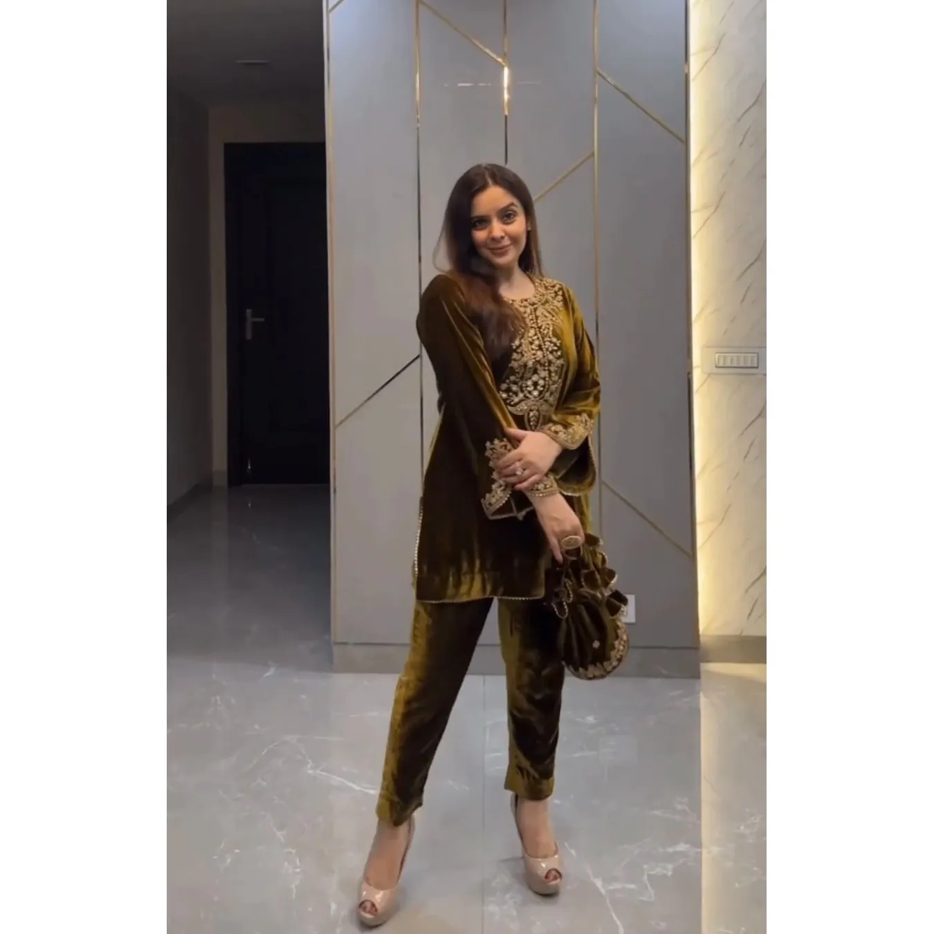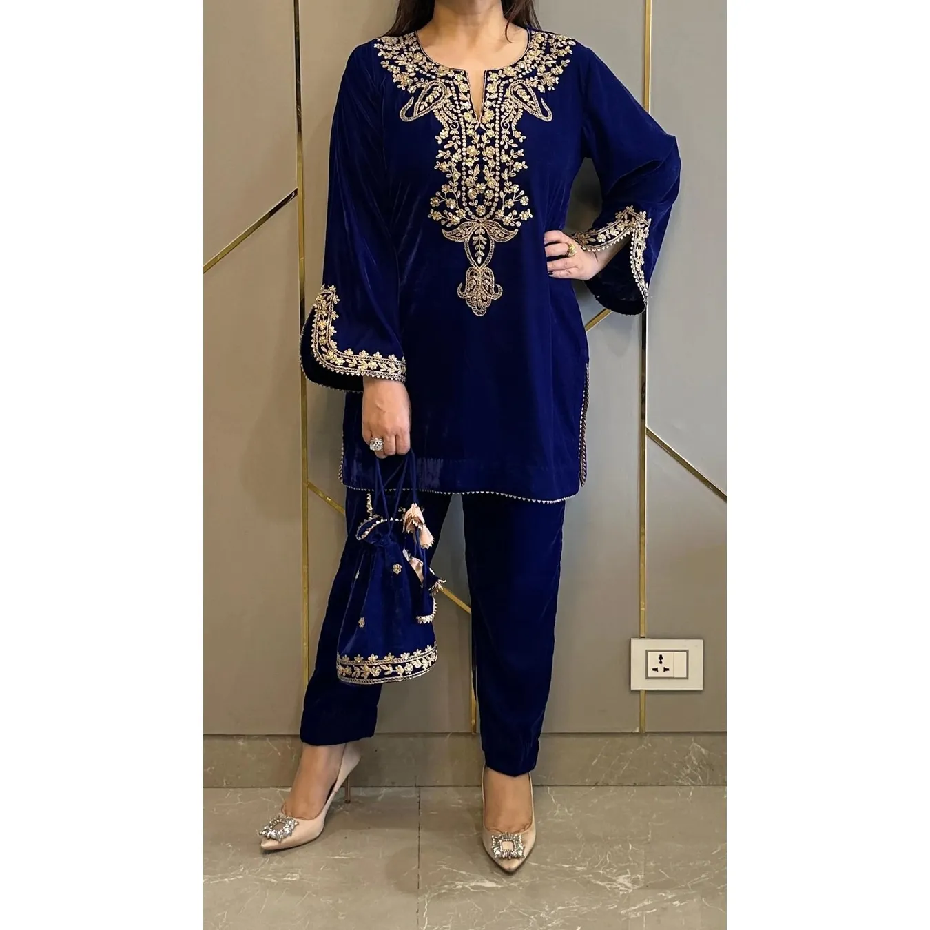 | Catalog Name | Designer Velvet Embroidered Top & Bottom Set |