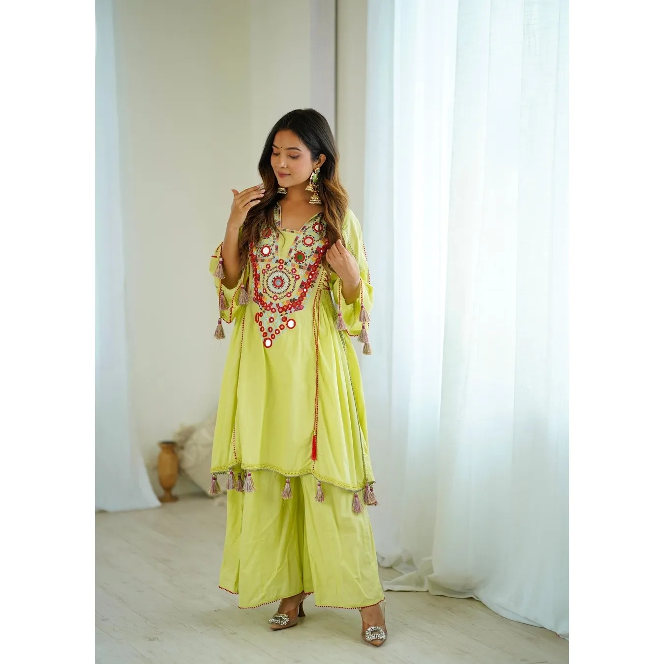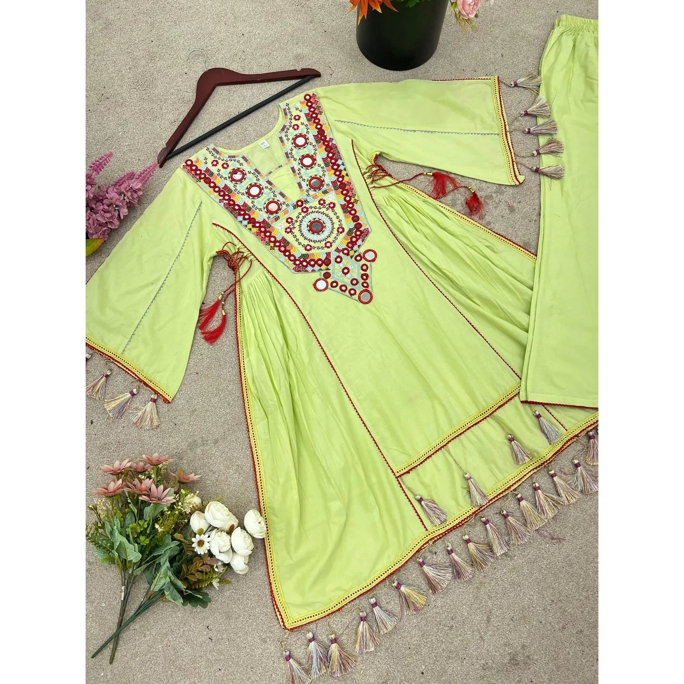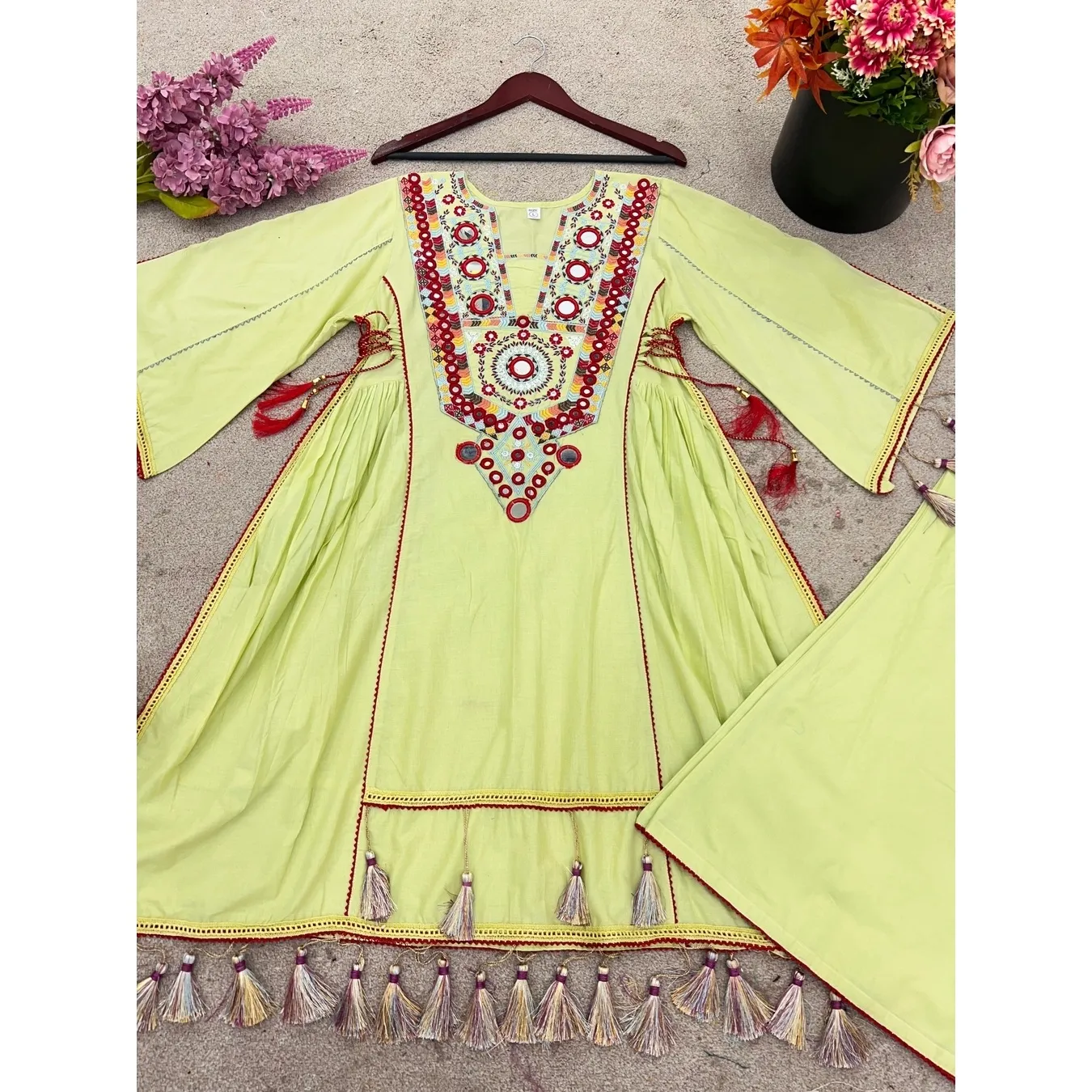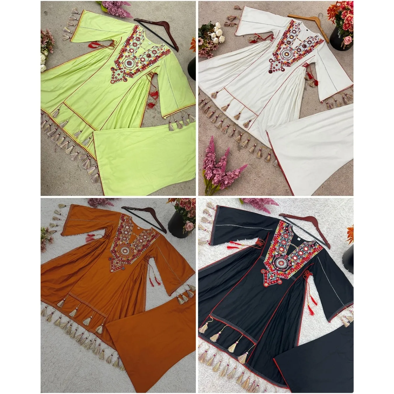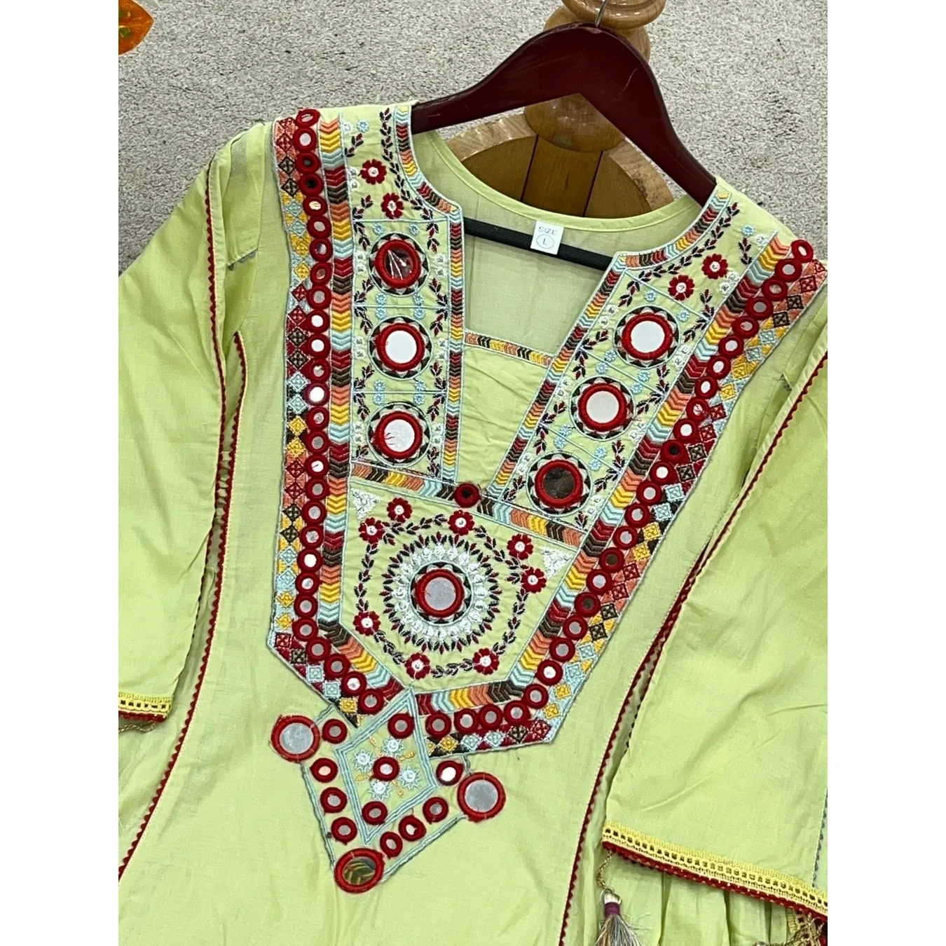 | Fabric Description | Top : Pure Khadi Cotton With Embroidery Sequence Work With Real Mirror Work Plazzo : Pure Khadi Cotton With Pocket |