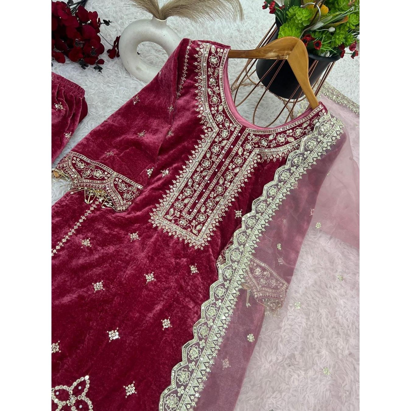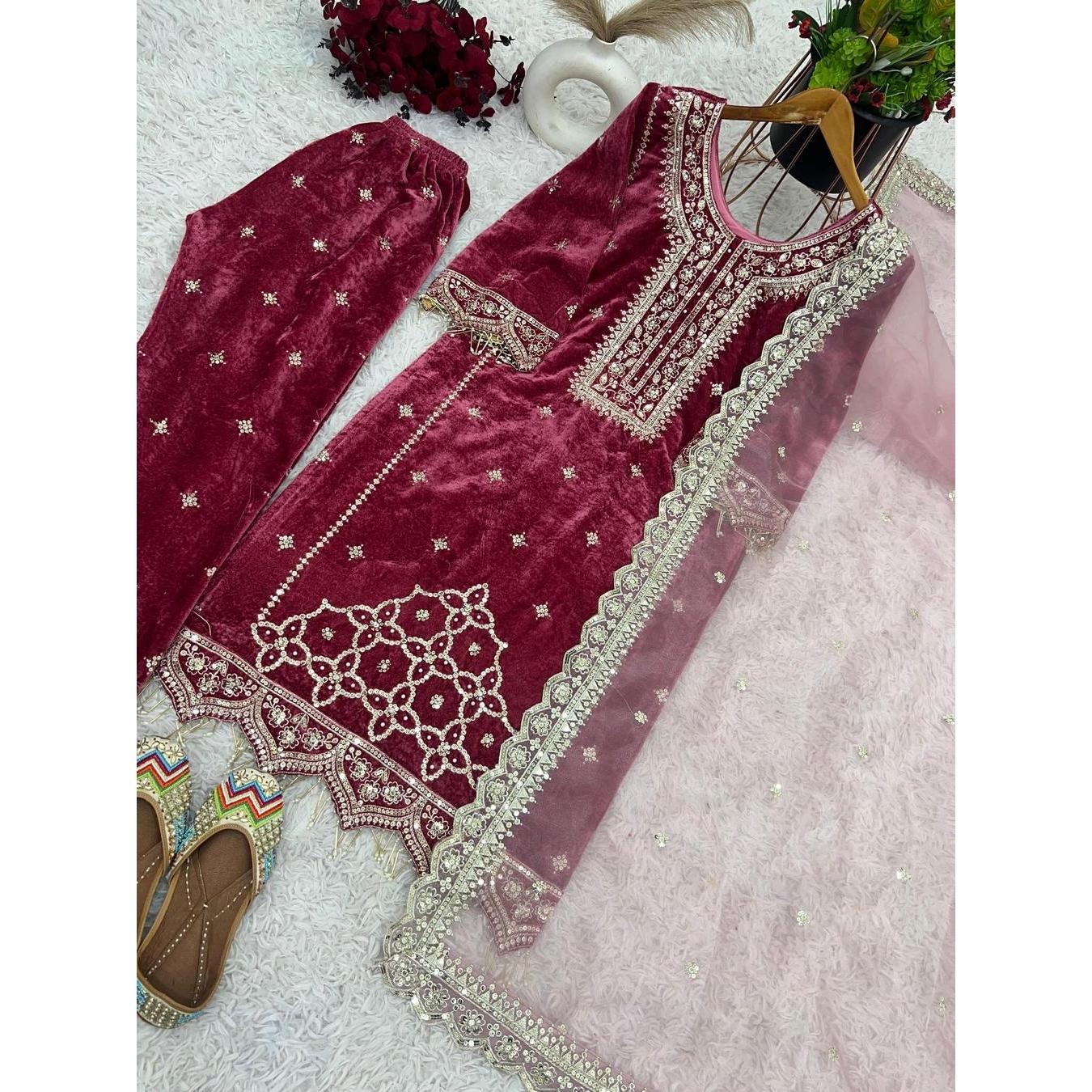 Launching New Party Wear Viscose Velvet Designer Look Top-Dupatta And Fully Stiched Bottom With Heavy Embroidery Siquance Work