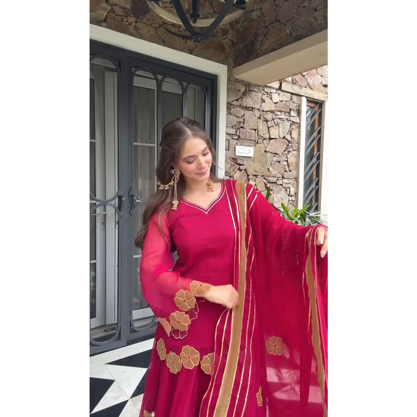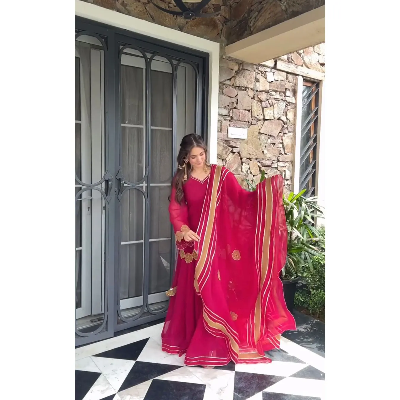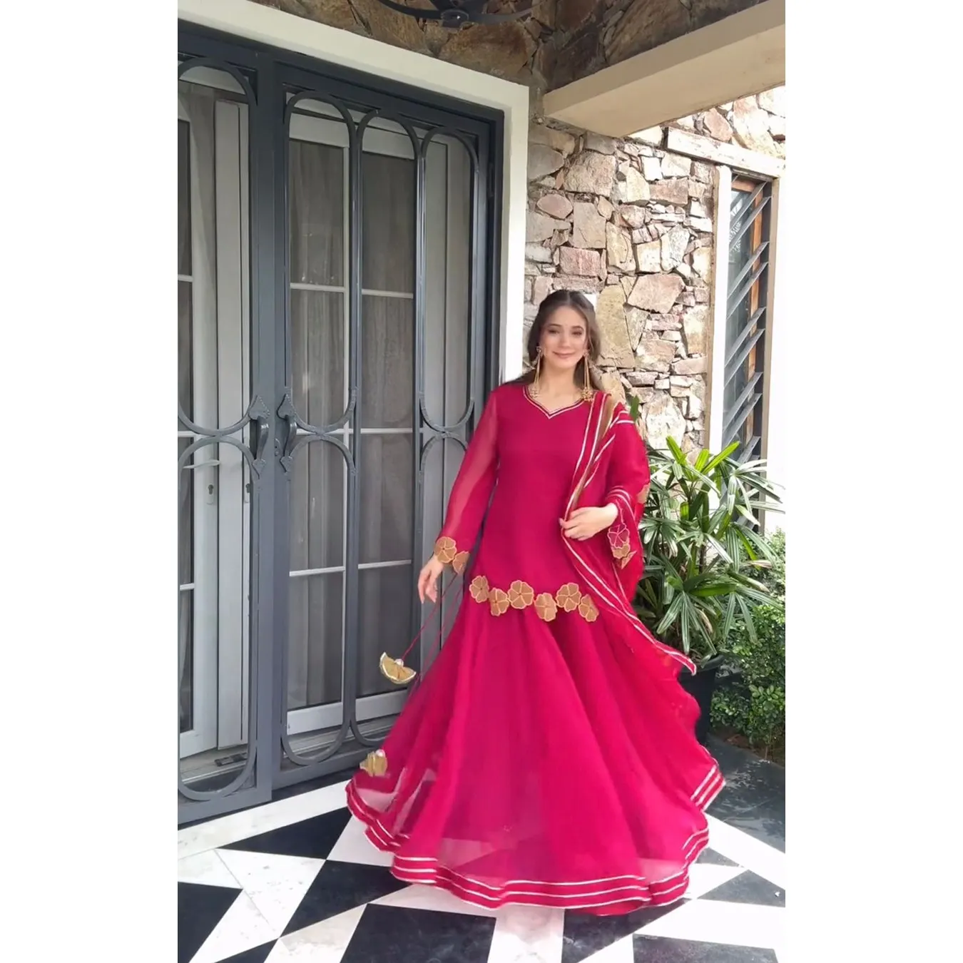 | Fabric Description | Top : Fox Georgette With Embroidery Work Sleeves : Full Inner : Heavy Micro Cotton Bottom Sharara Plazzo : Fox Georgette, Full Flair Dupatta : Faux Georgette Design : Gotta Patti With Border |