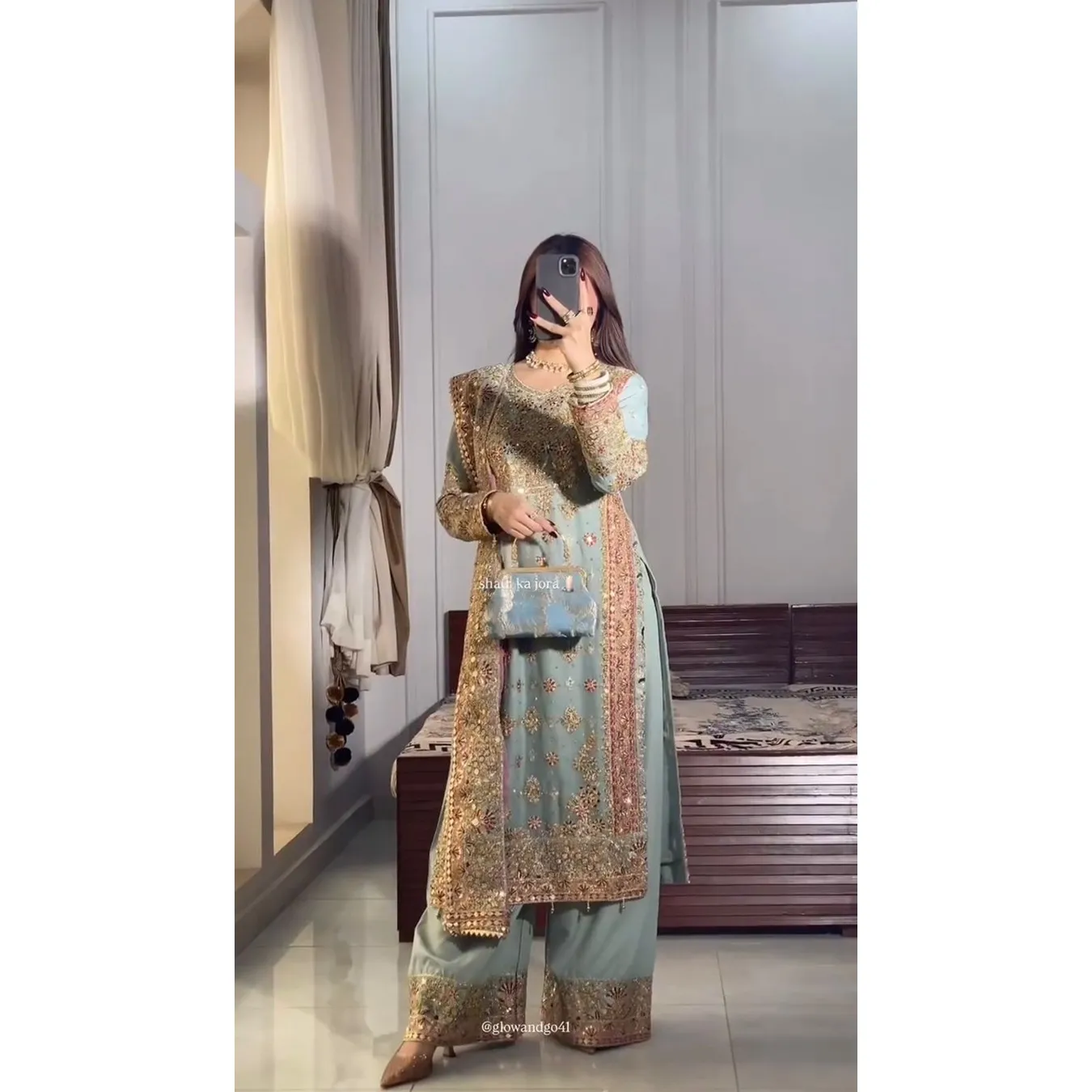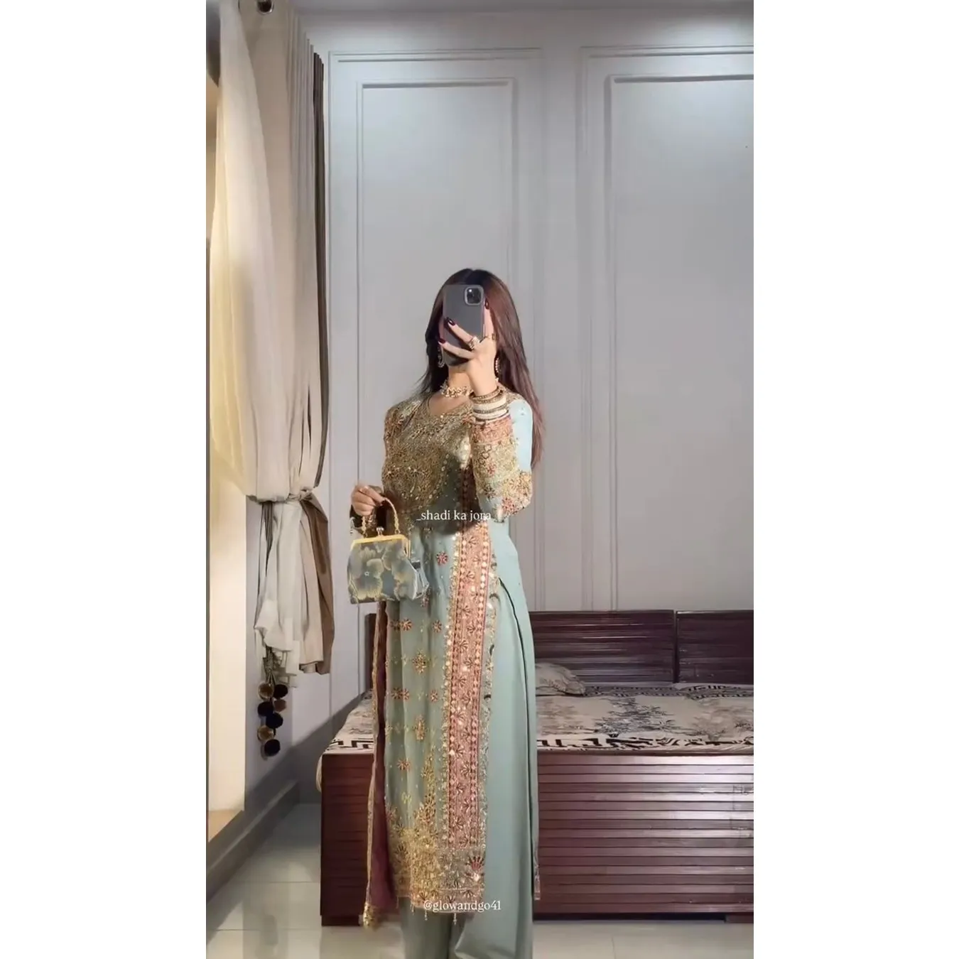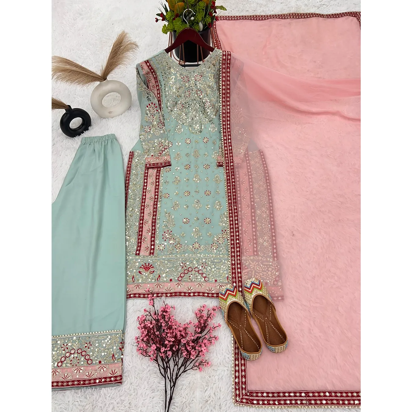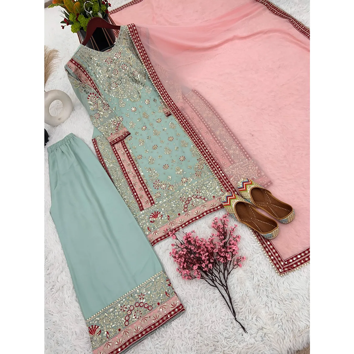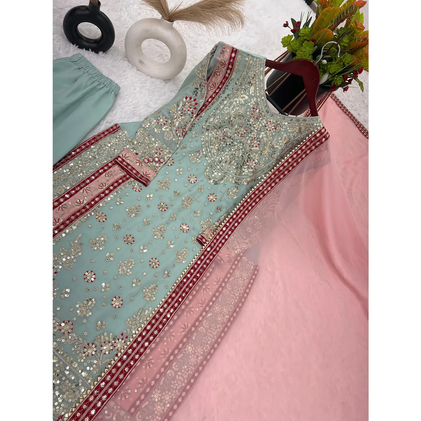 Presenting New Collection In Faux Georgette With Heavy Embroidery Sequence Work Top-Bottom And Dupatta Set Fully Stitched Ready To Wear
