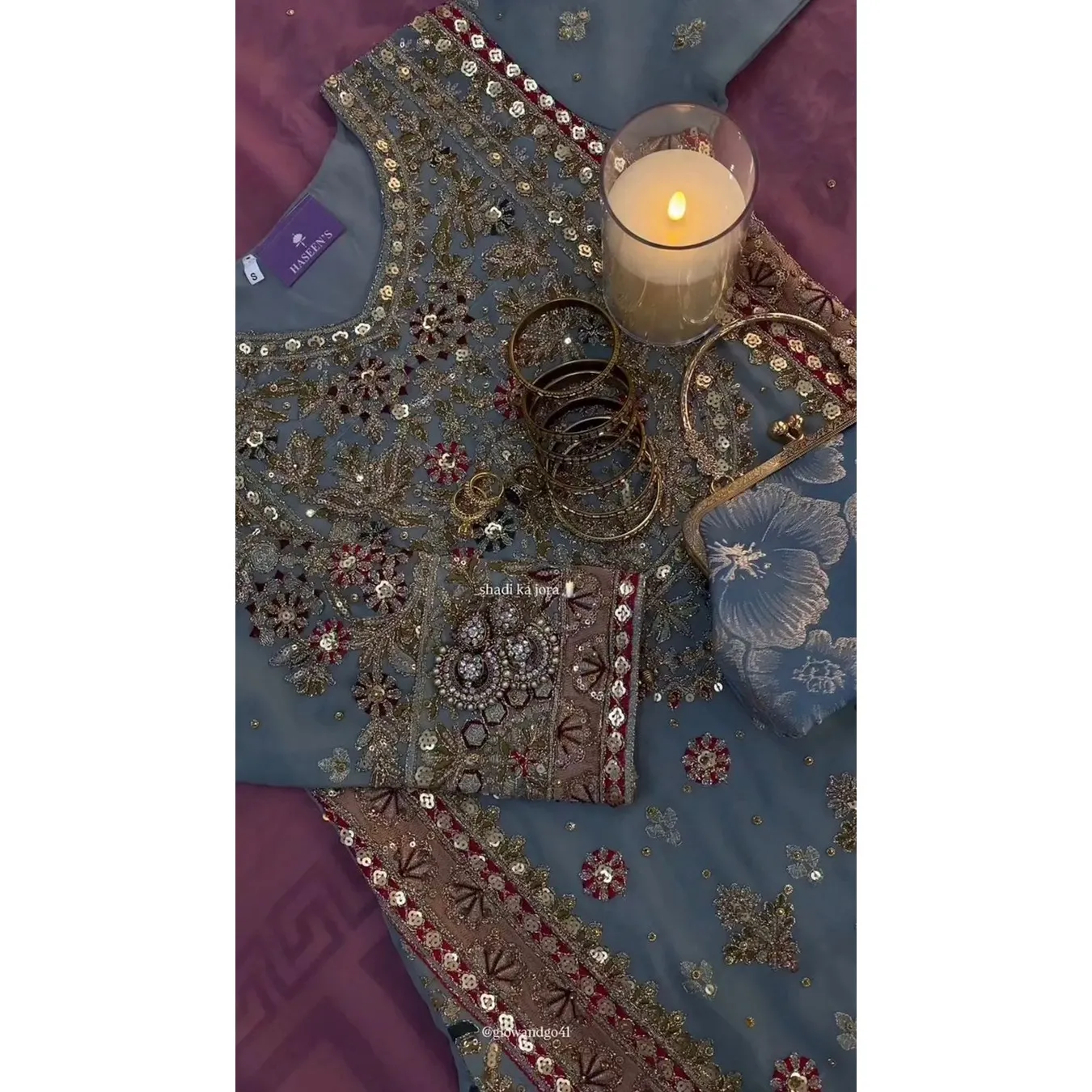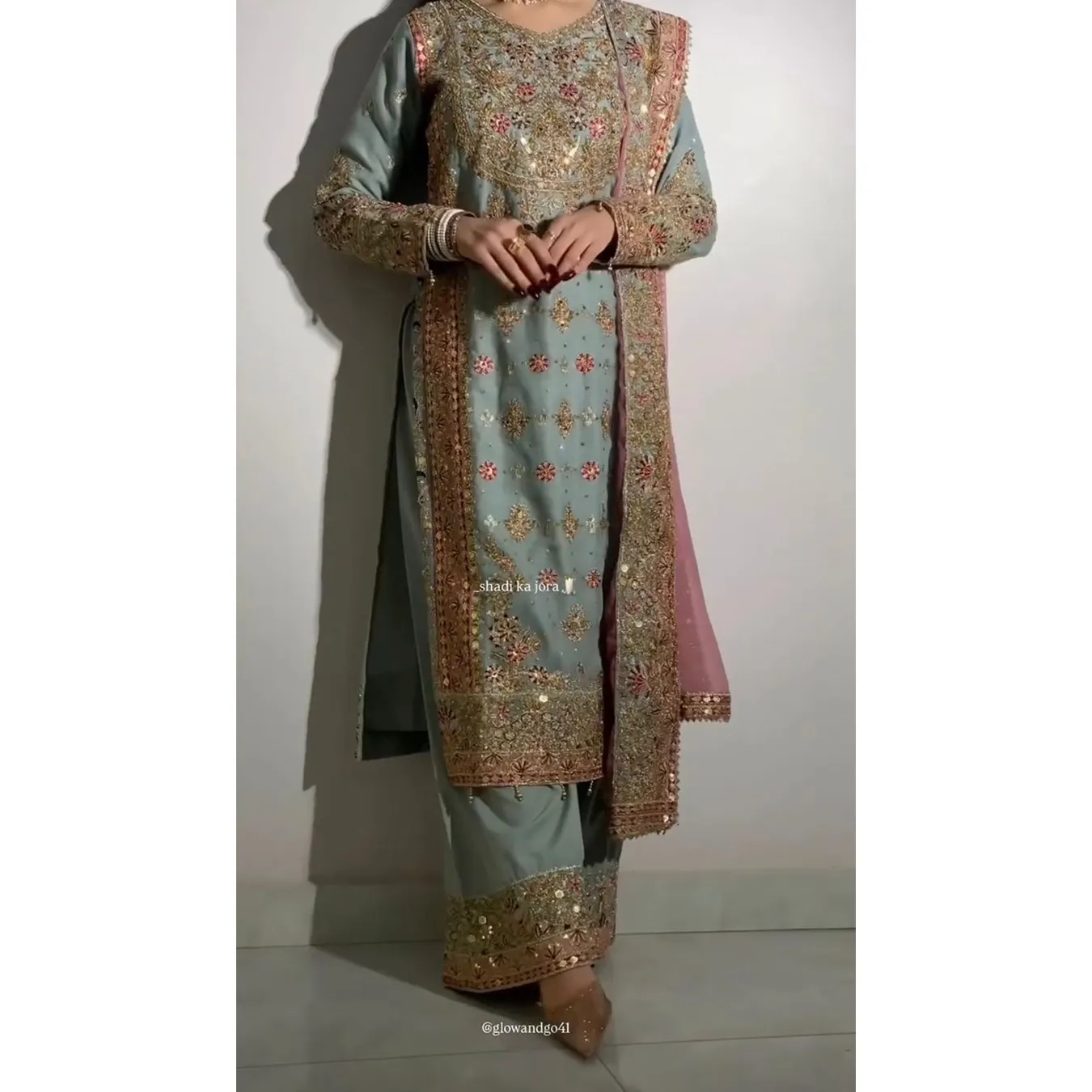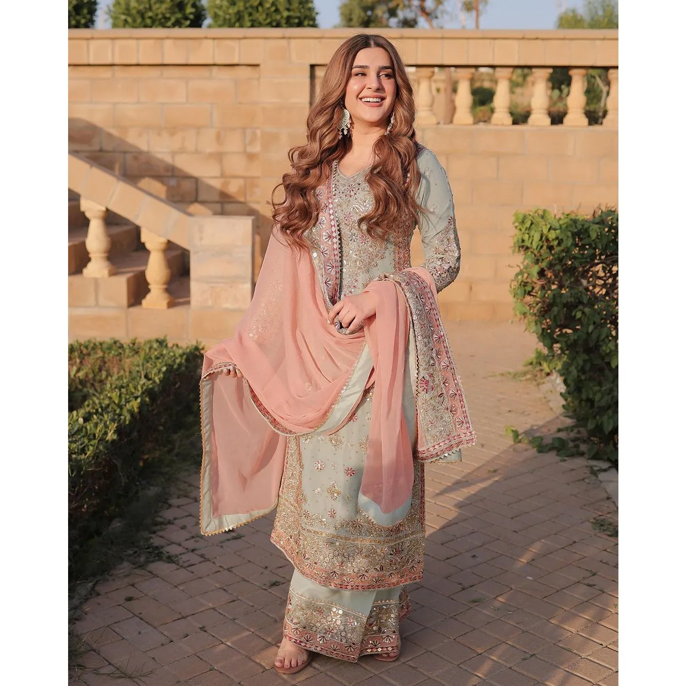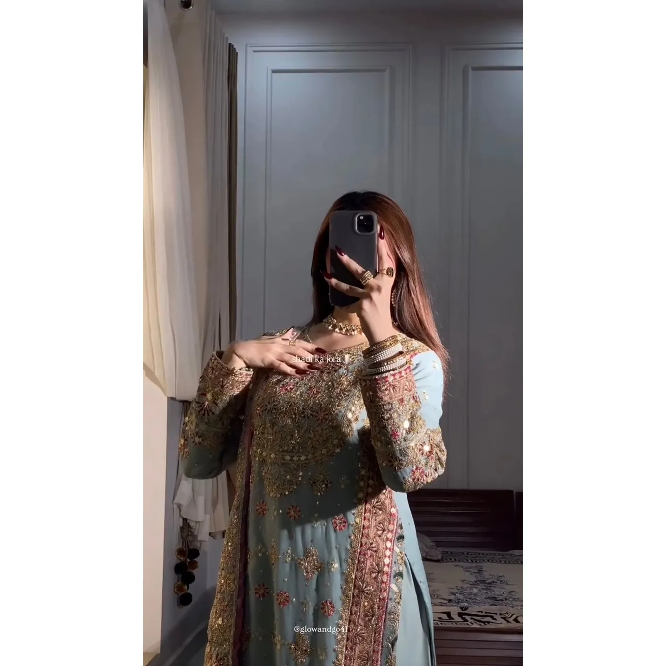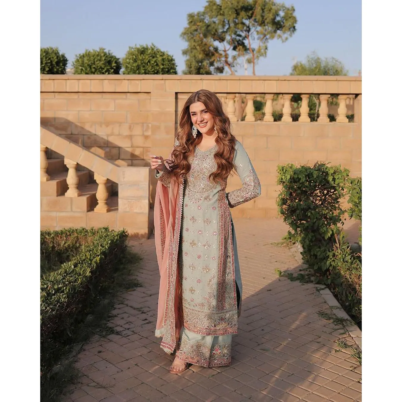 Presenting New Collection In Faux Georgette With Heavy Embroidery Sequence Work Top-Bottom And Dupatta Set Fully Stitched Ready To Wear