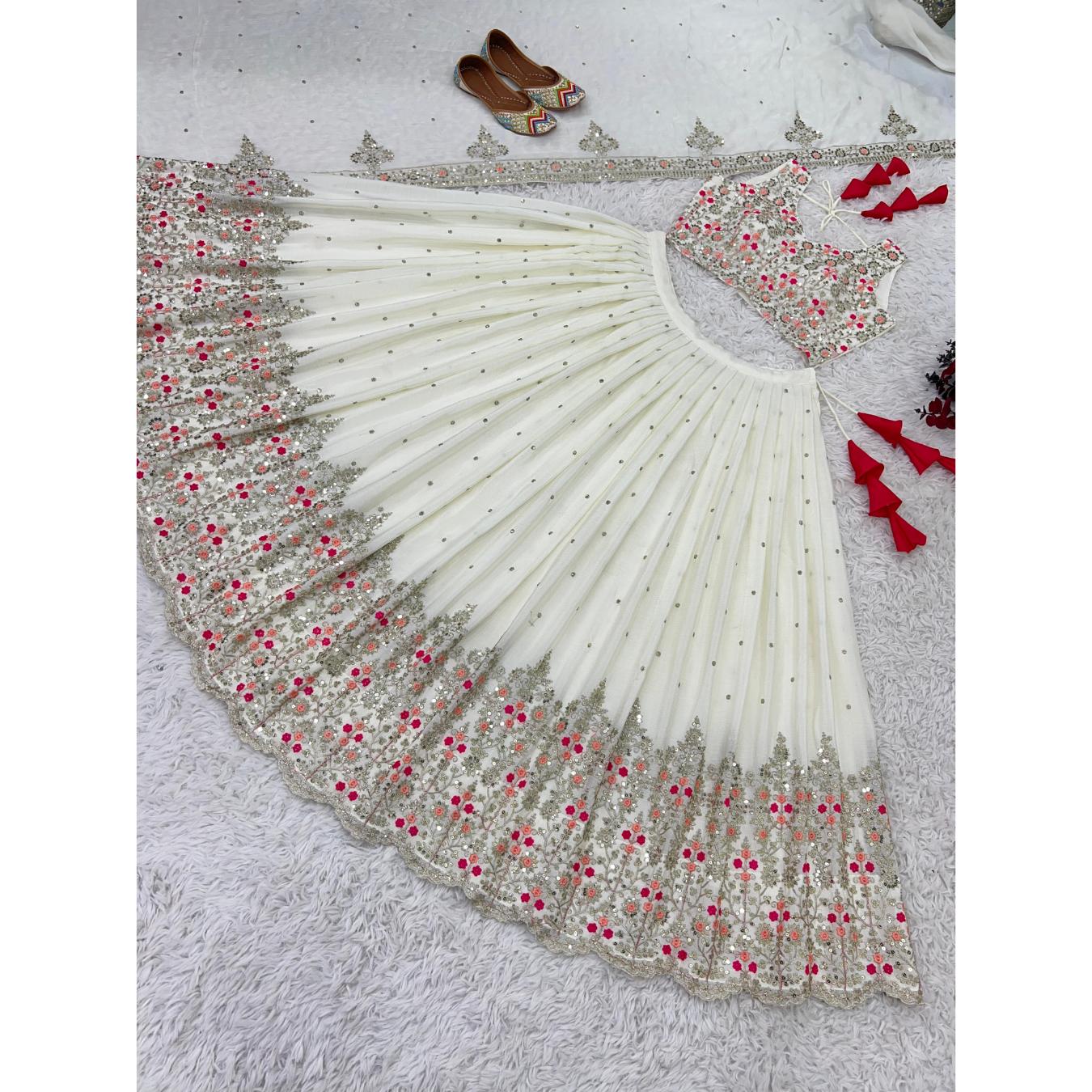 | Fabric Description | Lehenga Fabric : * Heavy Faux GeorgetteCholi Fabric: *Heavy Faux Georgette WithDupatta Fabric : *Heavy Faux Georgette |