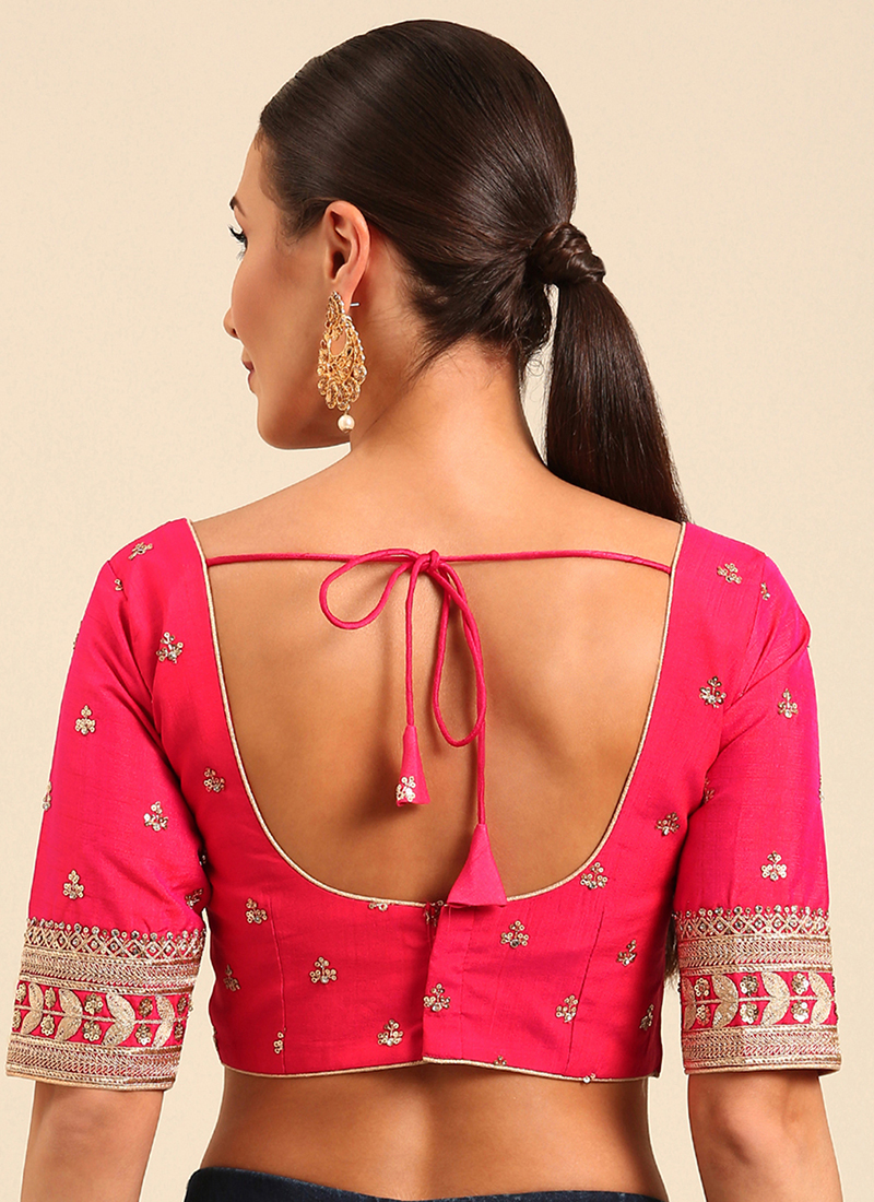 Raw Silk Pink Traditional Wear Embroidery Work Blouse