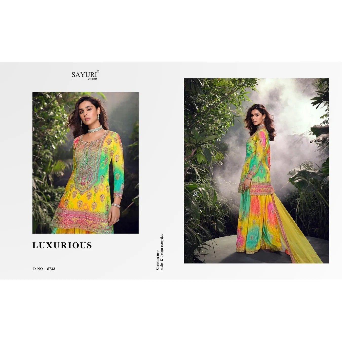| Catalog Name | Sayuri Carnival Chinon Printed Embroidered Semi-Stitched Suit Set |
