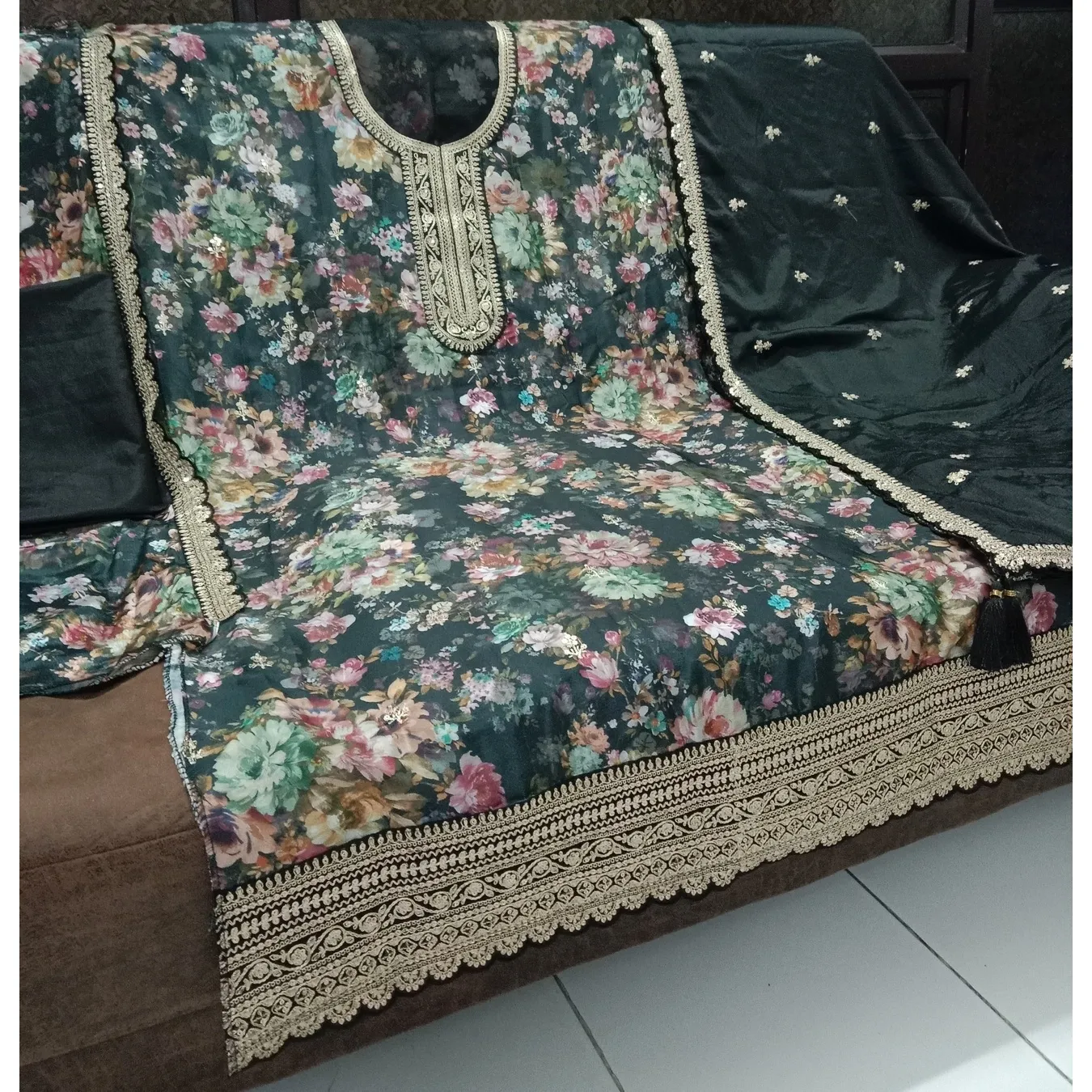 | Fabric Description | Top : Heavy Chinon With Multi Digital Print With Sequence Embroidery Stich Work Sleeves : Heavy Premium Chinon With Print & Work Inner : Heavy Santoon Silk Bottom : Havy Santoon Silk With Work Dupatta : Heavy Chinon With Work |