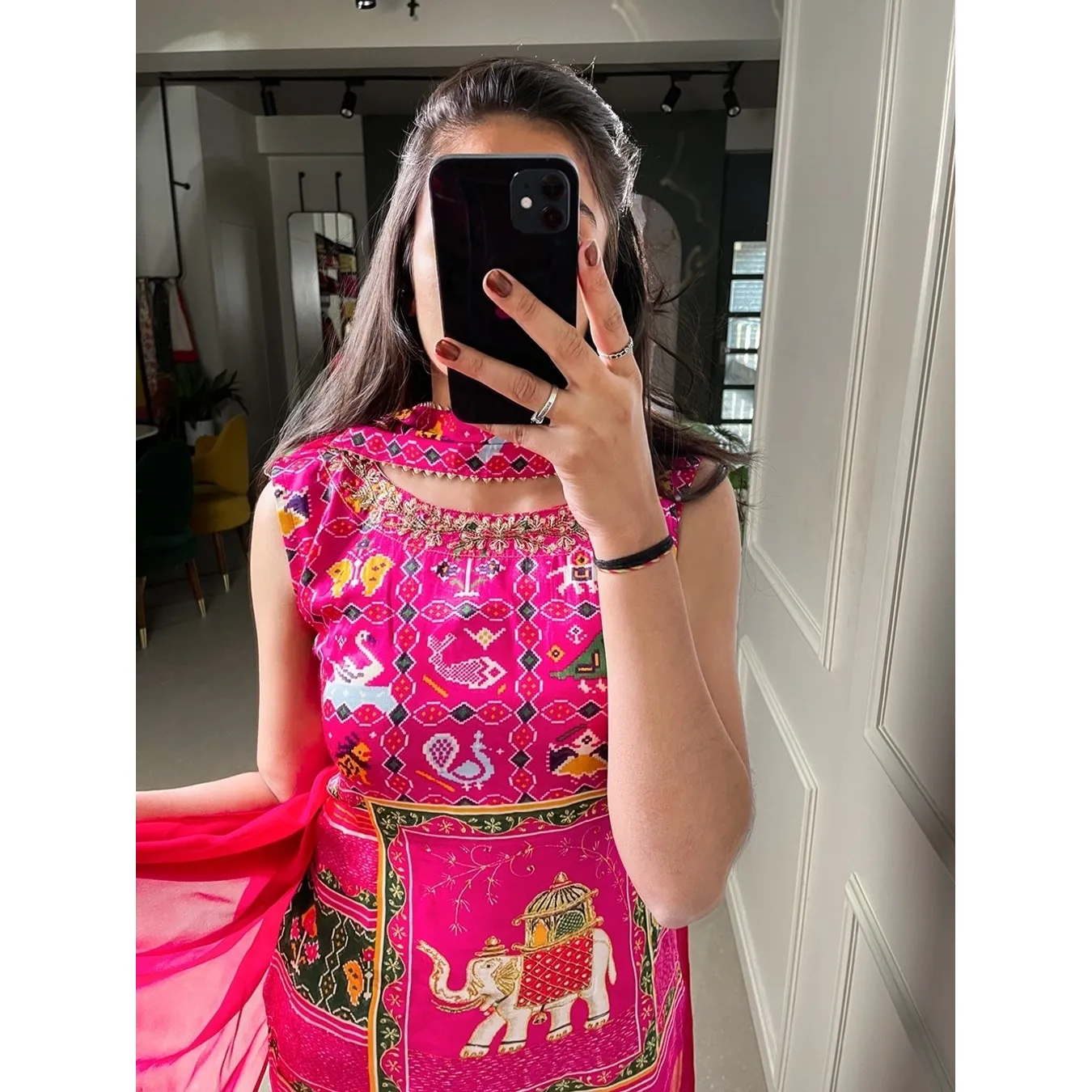 Catalog Name | Designer Gaji Silk Printed Kurti with Plazo and Dupatta Set |