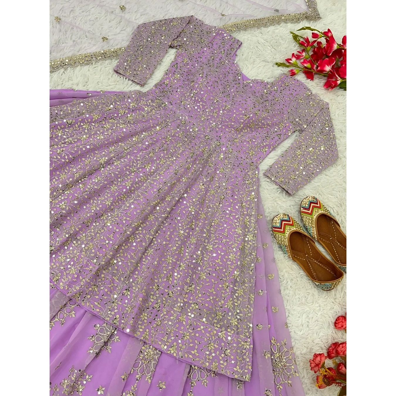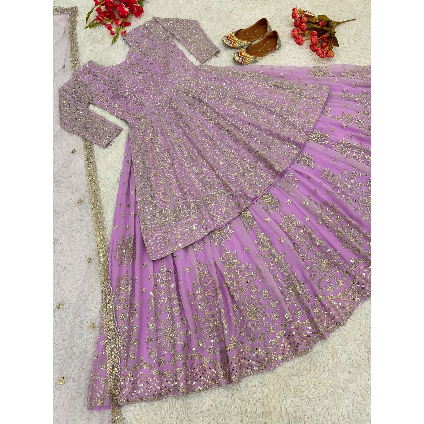 Fabric Description | Top : Faux Georgette With Heavy Embroidery 5 Mm Sequence Work With Embroidery Sleeve Inner : Micro Cotton Lehenga : Faux Georgette With 5 Mm Embroidery Sequence Lace Border (Semistitched) Inner : Micro Cotton Dupatta : Heavy Net With Embroidery Sequence Work And Embroidery Sequence Lace Border |