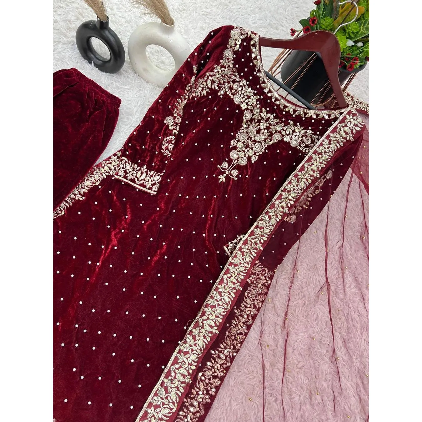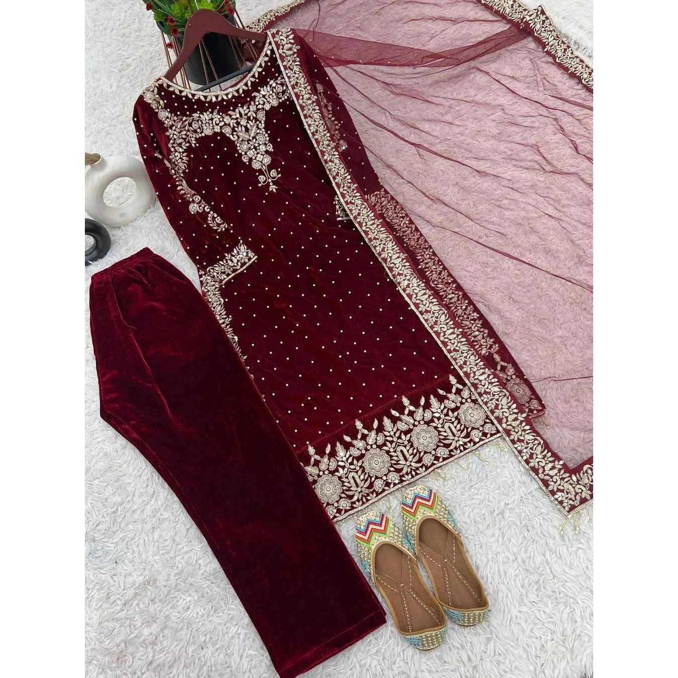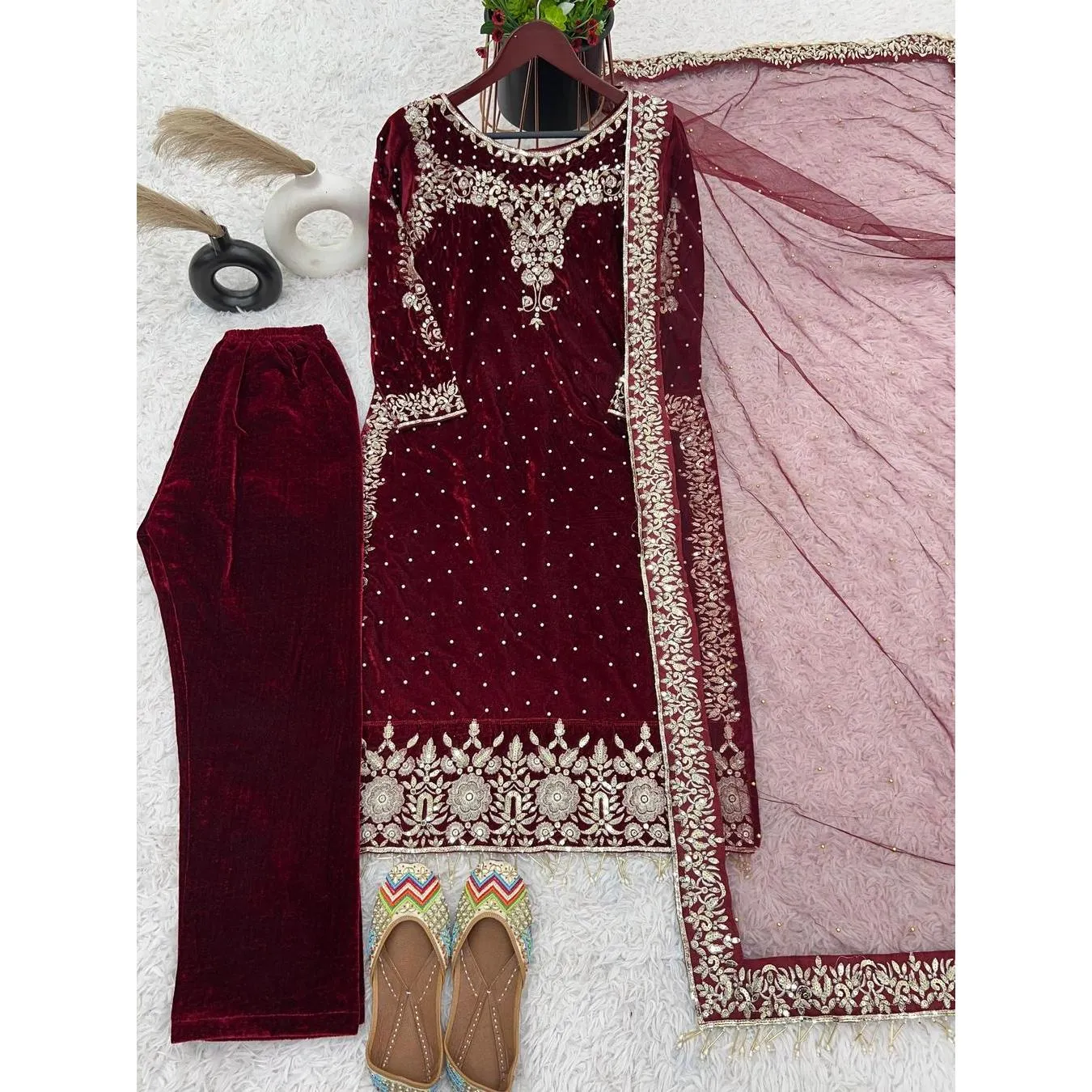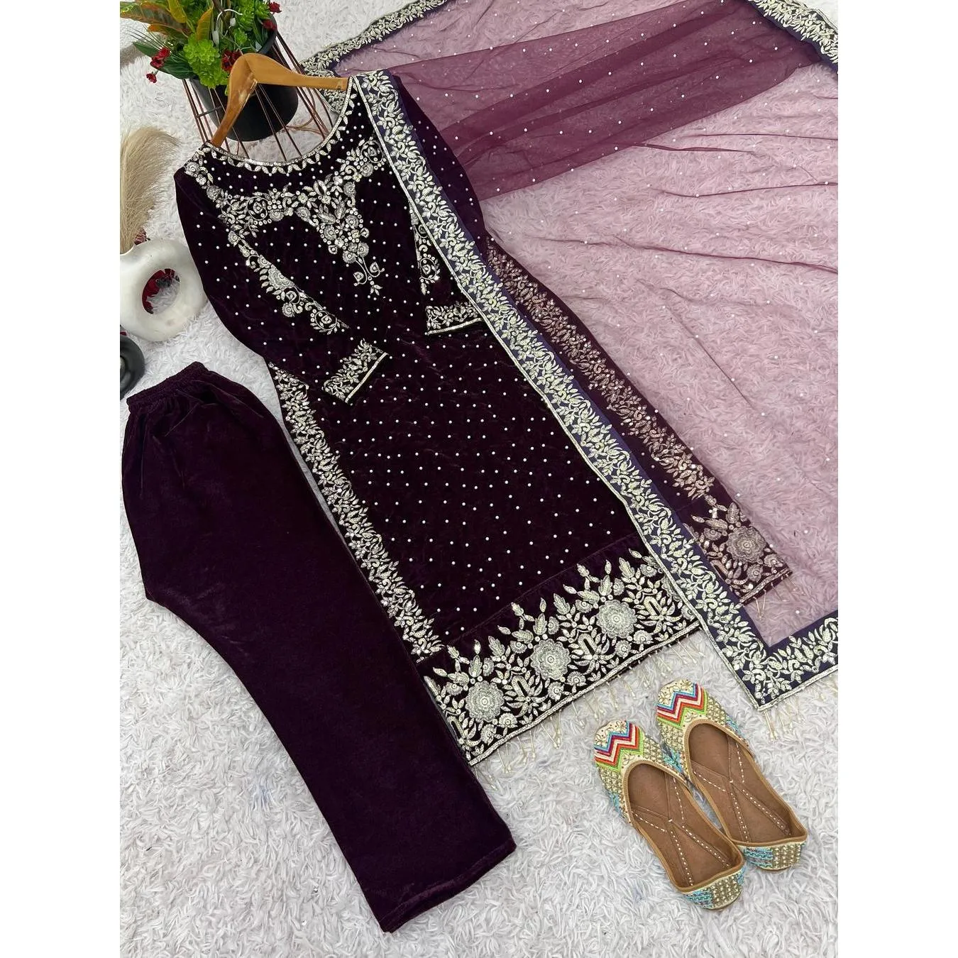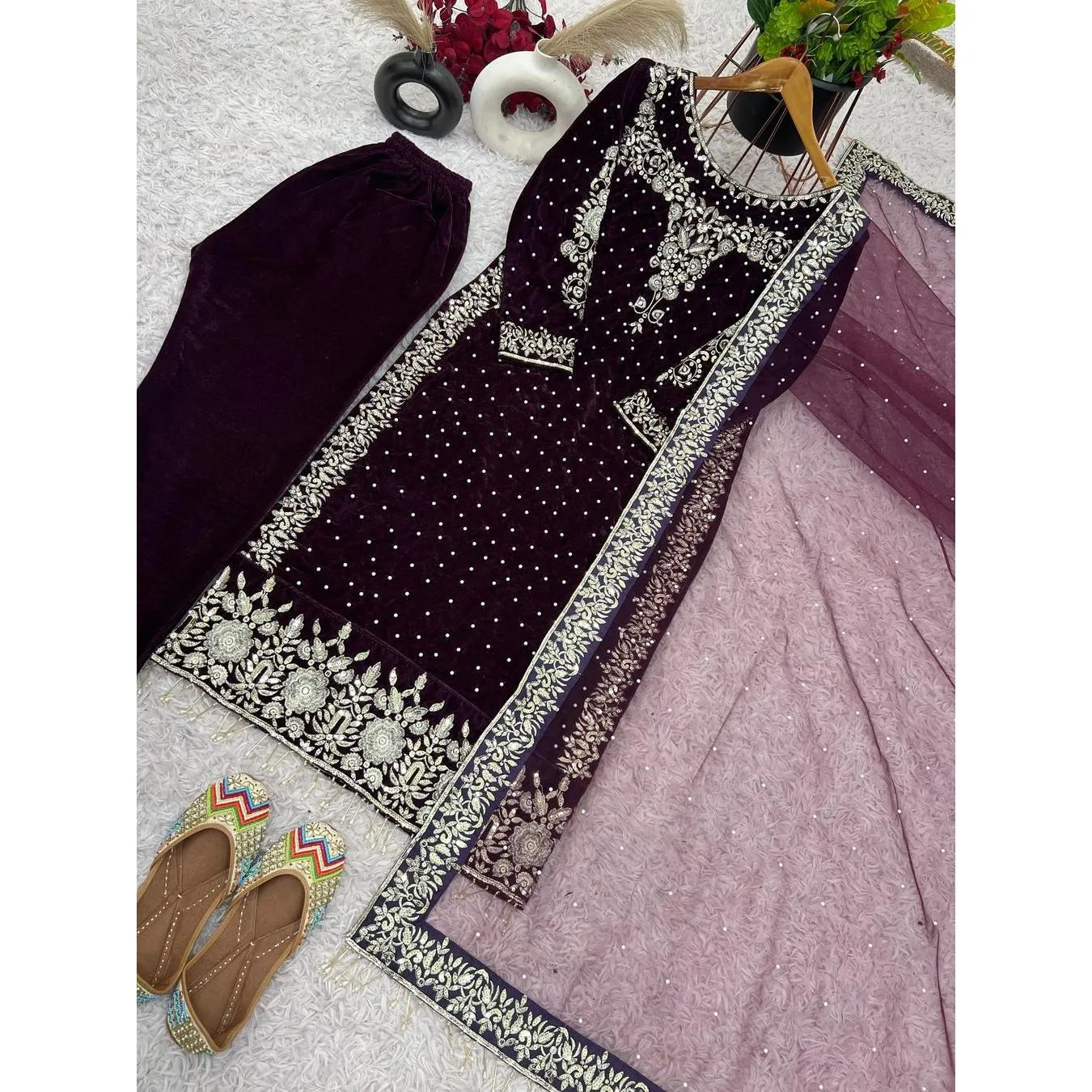 | Catalog Name | Viscose Velvet Embroidered Party Wear Set |
