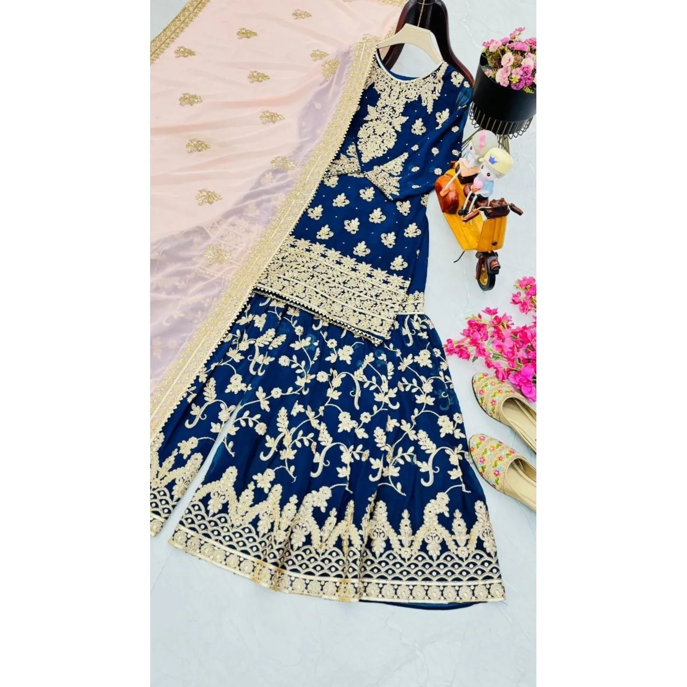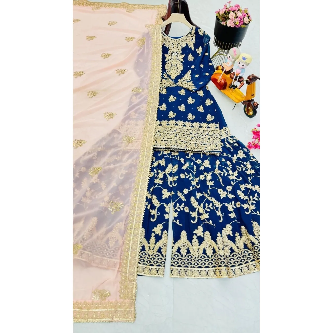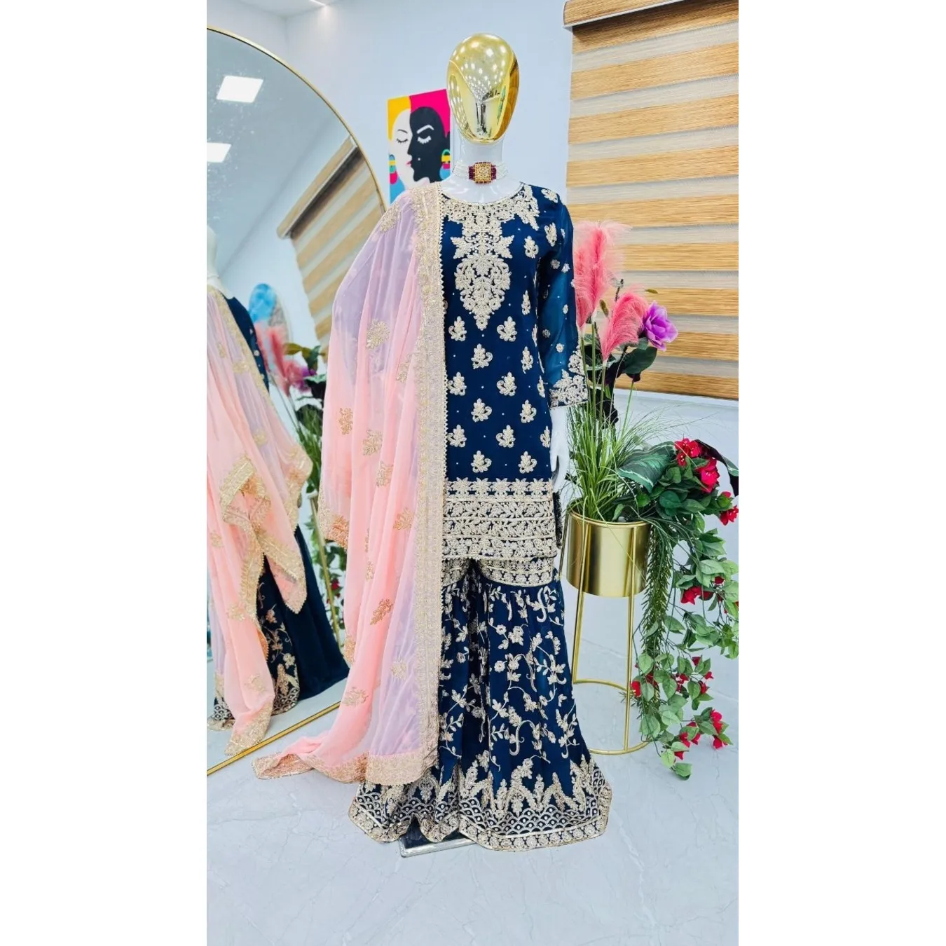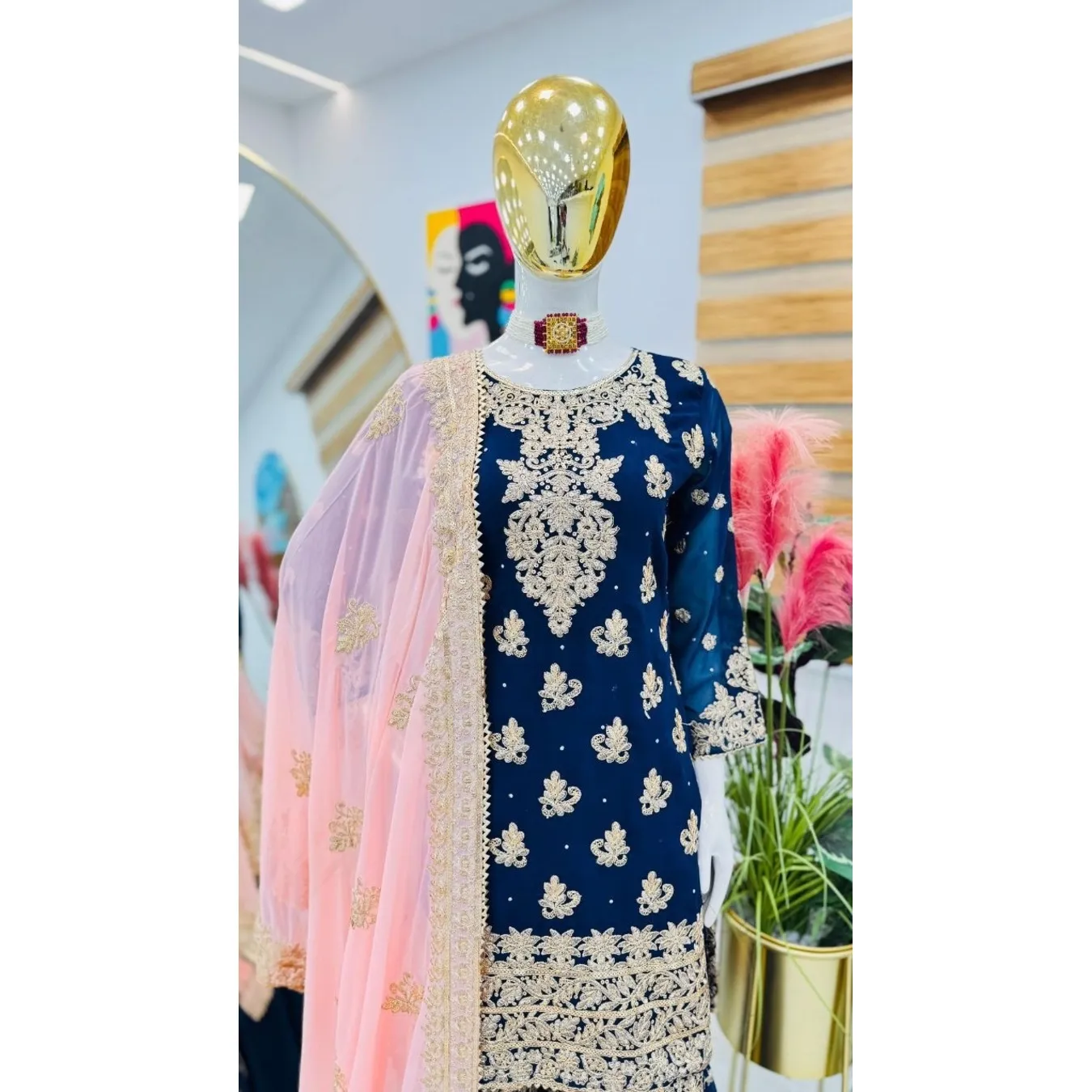 Fabric Description | Top : Fox Georgette Work : Embroidery Codding Siqunce Work Sararra : Fox Georgette Work : Embroidery Codding Siqunce Work Dupatta : Fox Georgette Work : Embroidery Codding Siqunce Work |