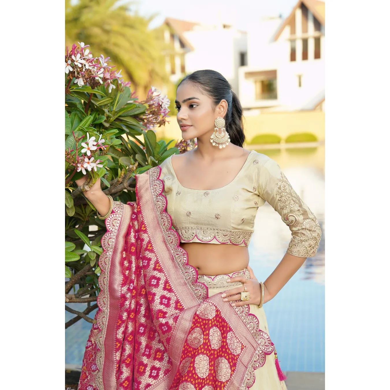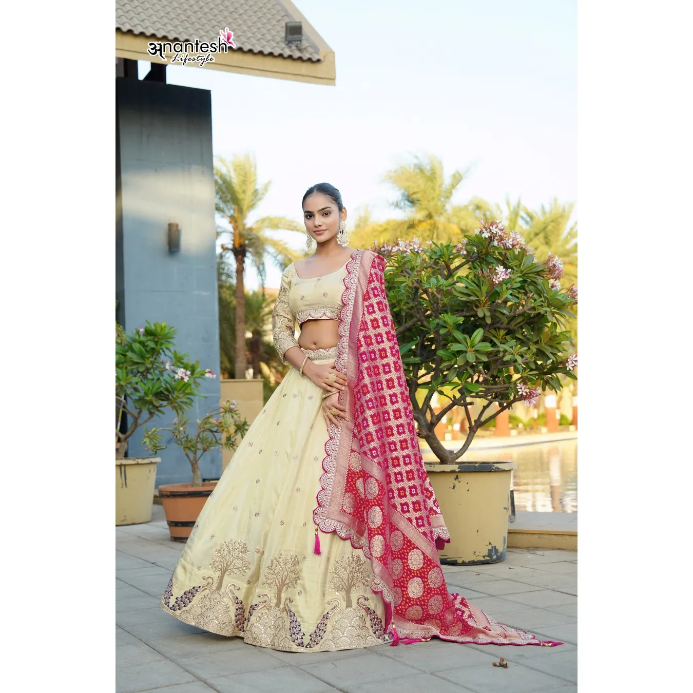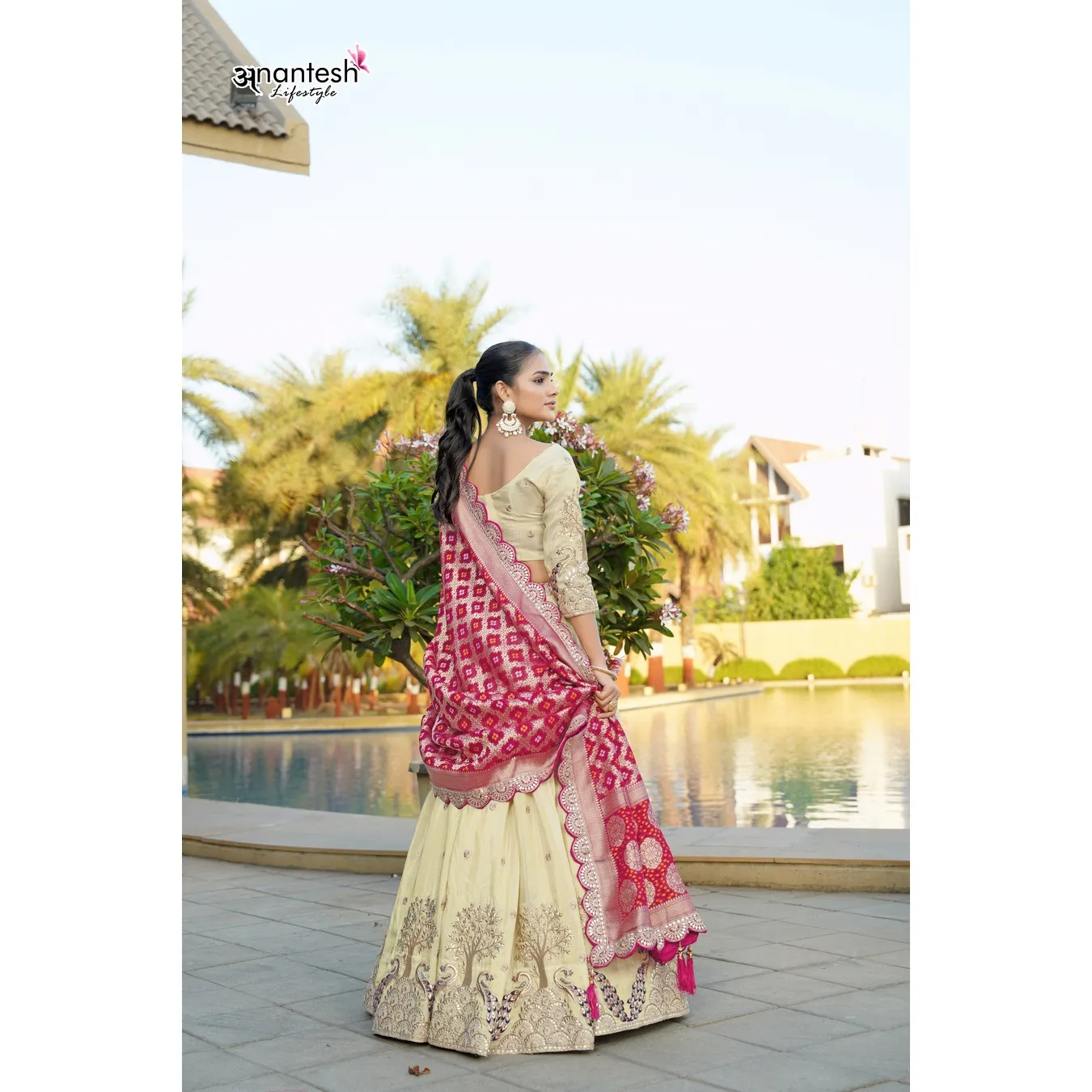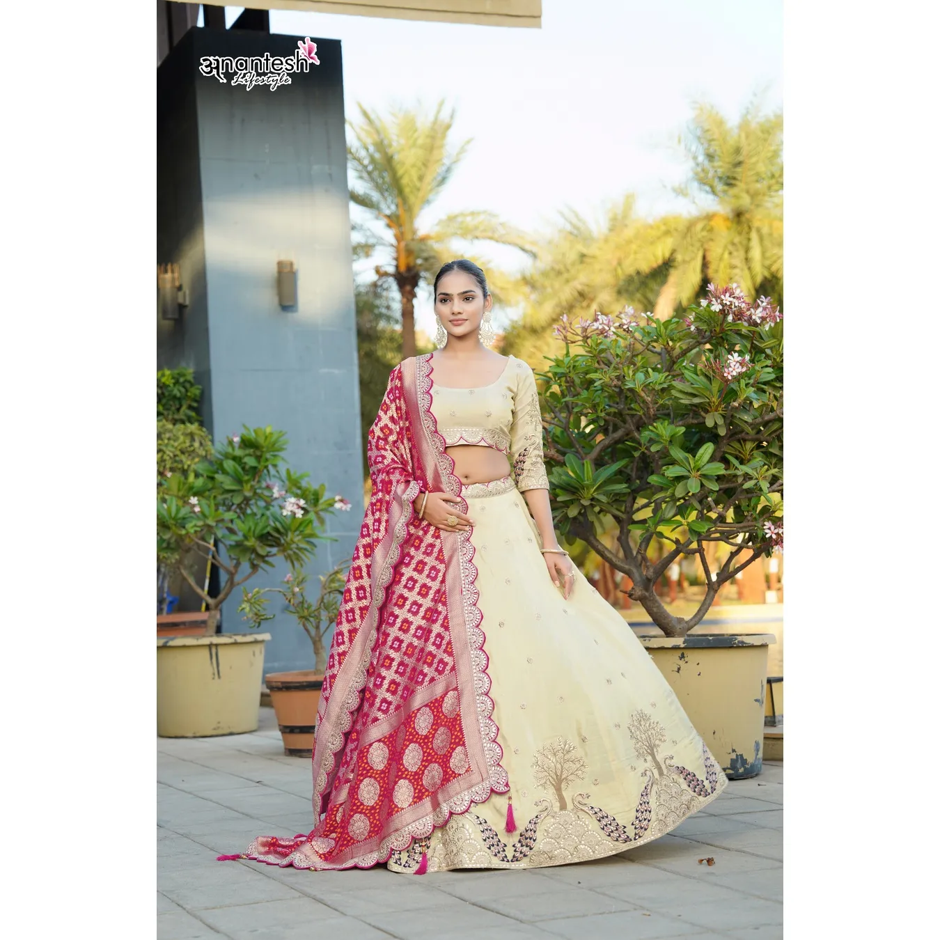 Make your special day truly unforgettable with our elegant Cream Cosmos Viscose Bridal Lehenga Set. Crafted from premium pure cosmos viscose fabric, this lehenga features a luxurious fall and soft texture, perfect for grand celebrations like engagements, weddings, pre-wedding parties, and siders.