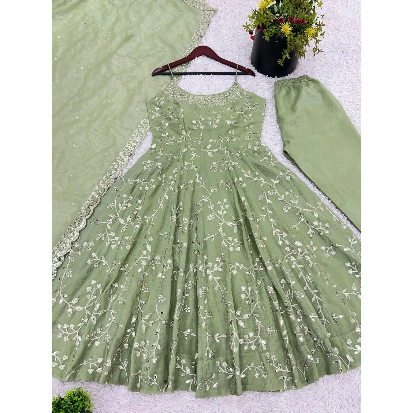 | Catalog Name | Embroidered Fandy Silk Party Wear Gown Set |