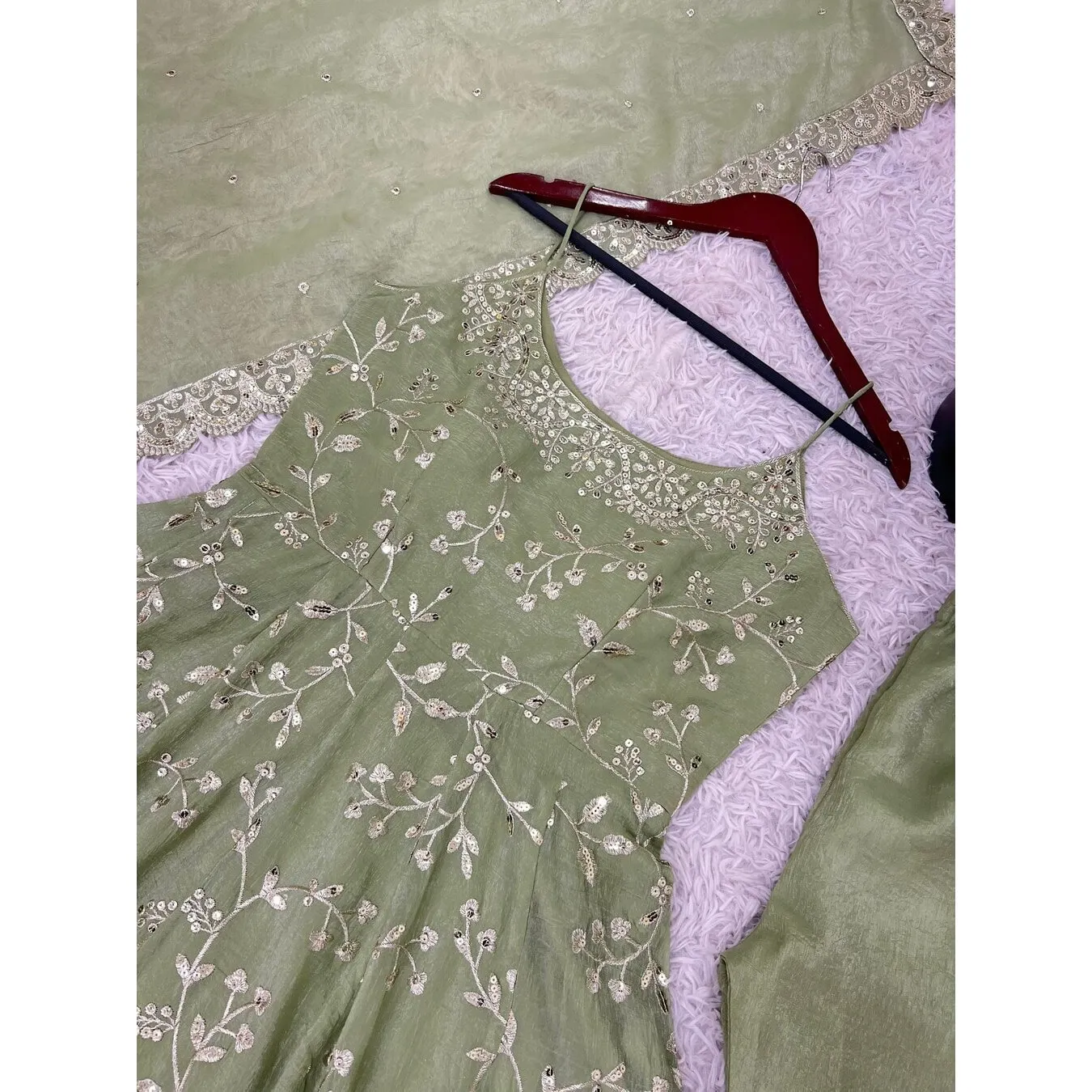 Launching Designer Party Wear Look Gown-Dupatta In Embroidery Sequence Work