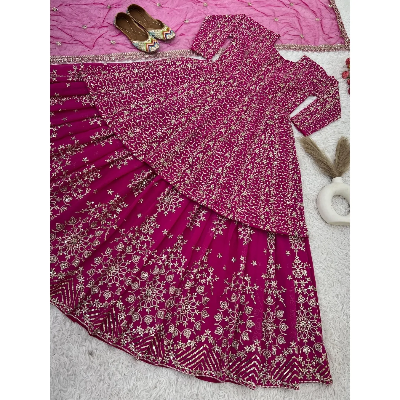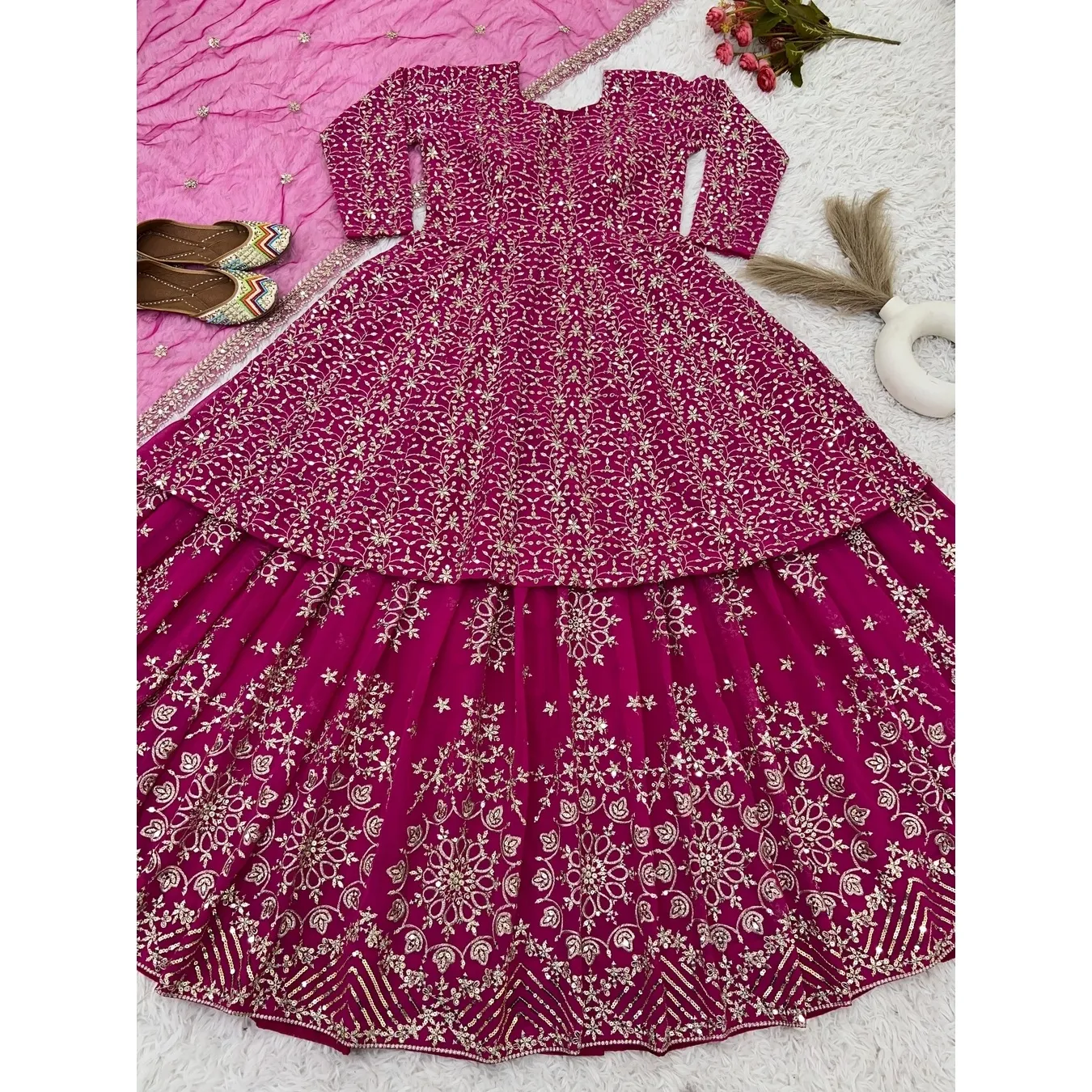 Fabric Description | Top : Faux Georgette With Heavy Embroidery 5 Mm Sequence Work With Embroidery Sleeve Inner : Micro Cotton Lehenga : Faux Georgette With 5 Mm Embroidery Sequence Lace Border (Semistitched) Inner : Micro Cotton Dupatta : Heavy Net With Embroidery Sequence Work And Embroidery Sequence Lace Border |