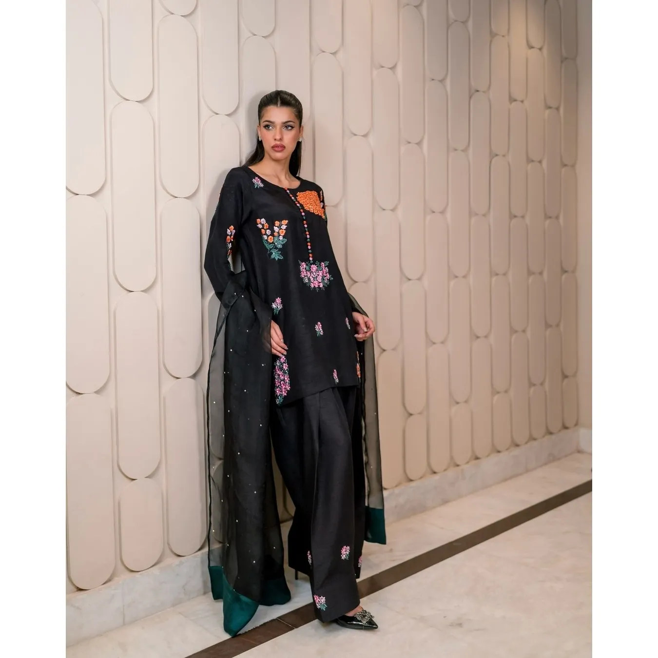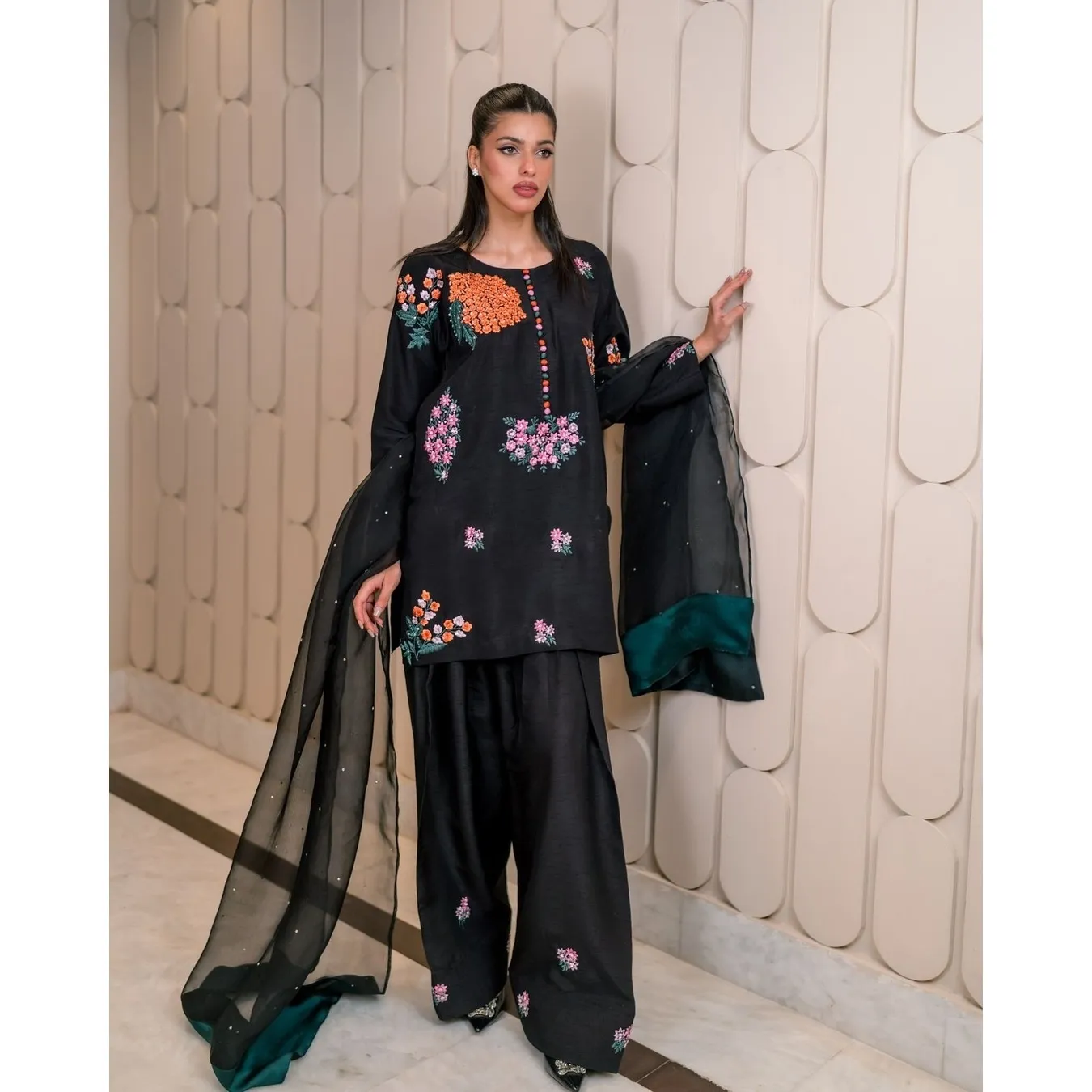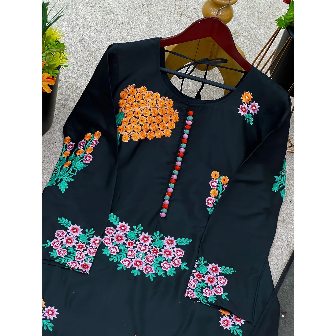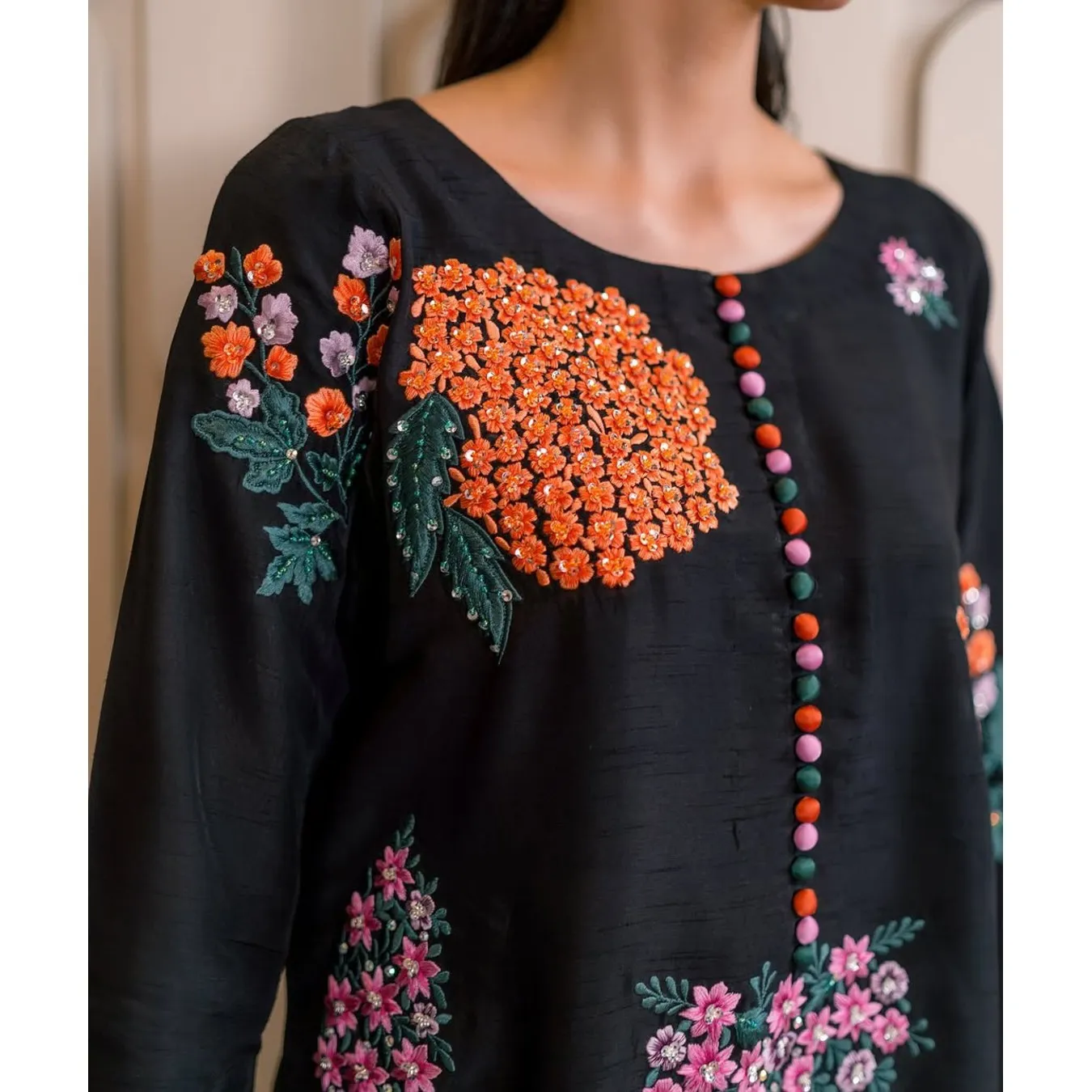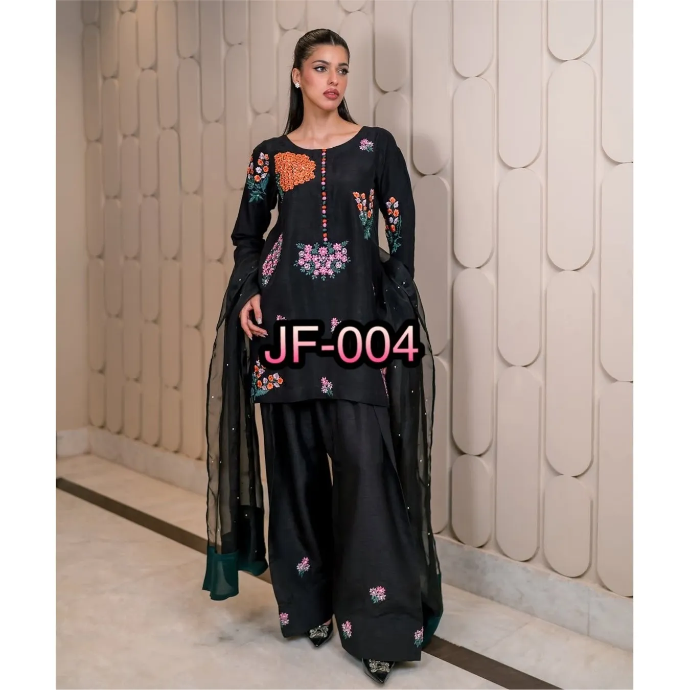 | Fabric Description | Top : Pure Natural Crep Silk With Embroidery Sequence Work With Full Sleeve Top Inner : Heavy Micro Cotton Pent : Pure Natural Crep Silk With Elastic (Full Stitched) Dupatta : Soft Net With Moti HandWork |
