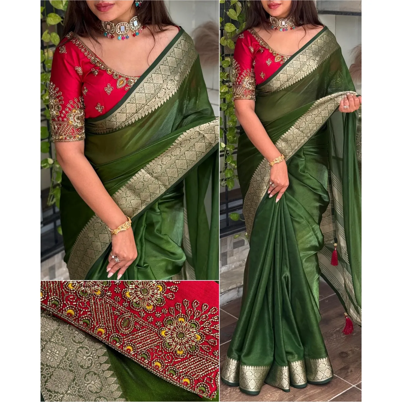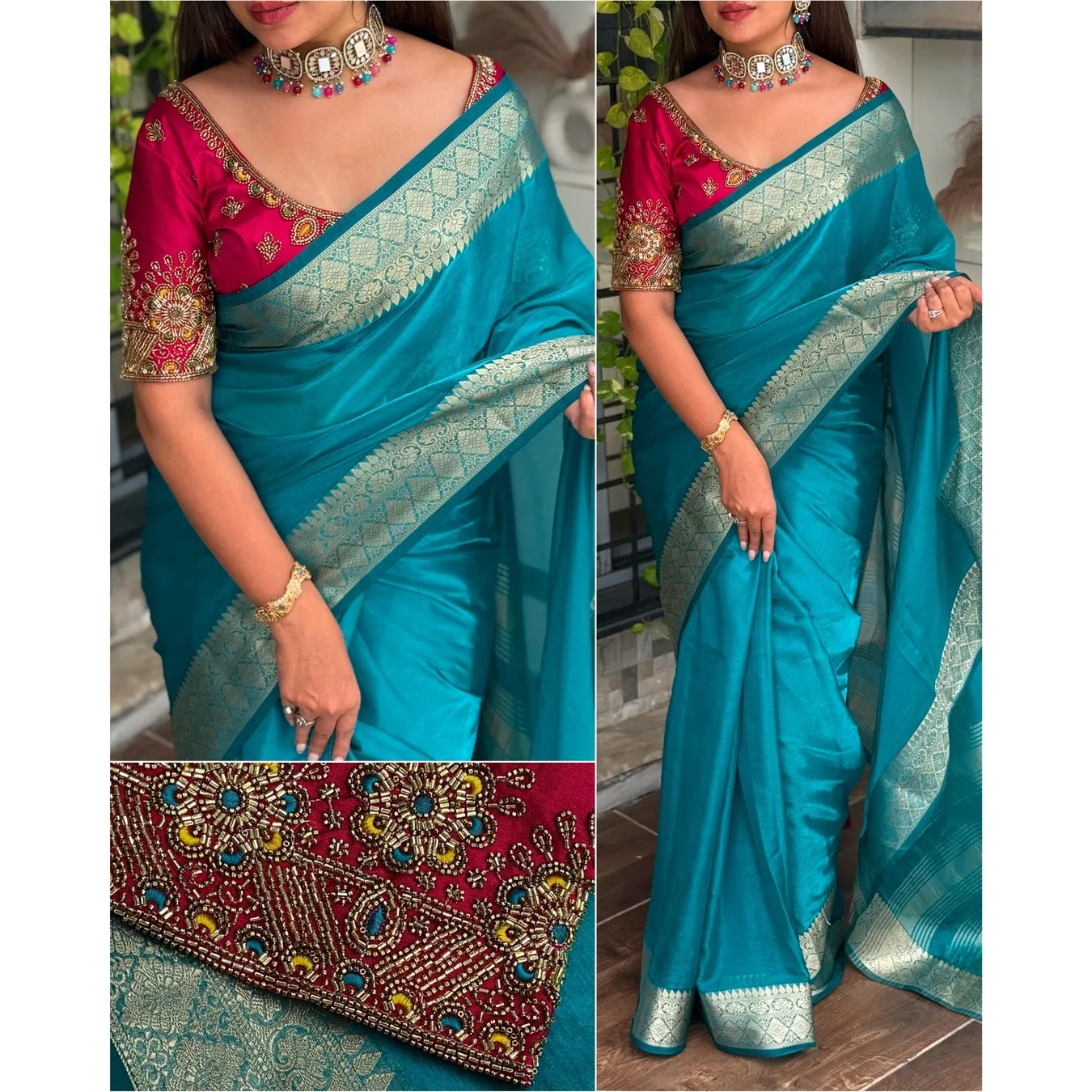 Simple Yet Elegant, Make A Statement With This Handwork Blouse With Fandy Satin Saree