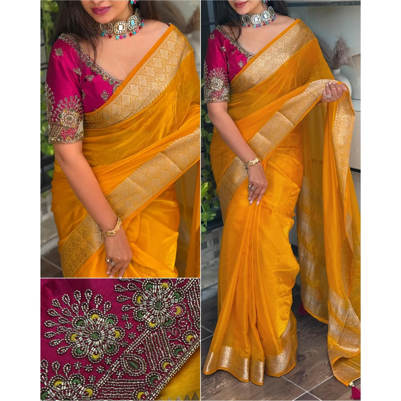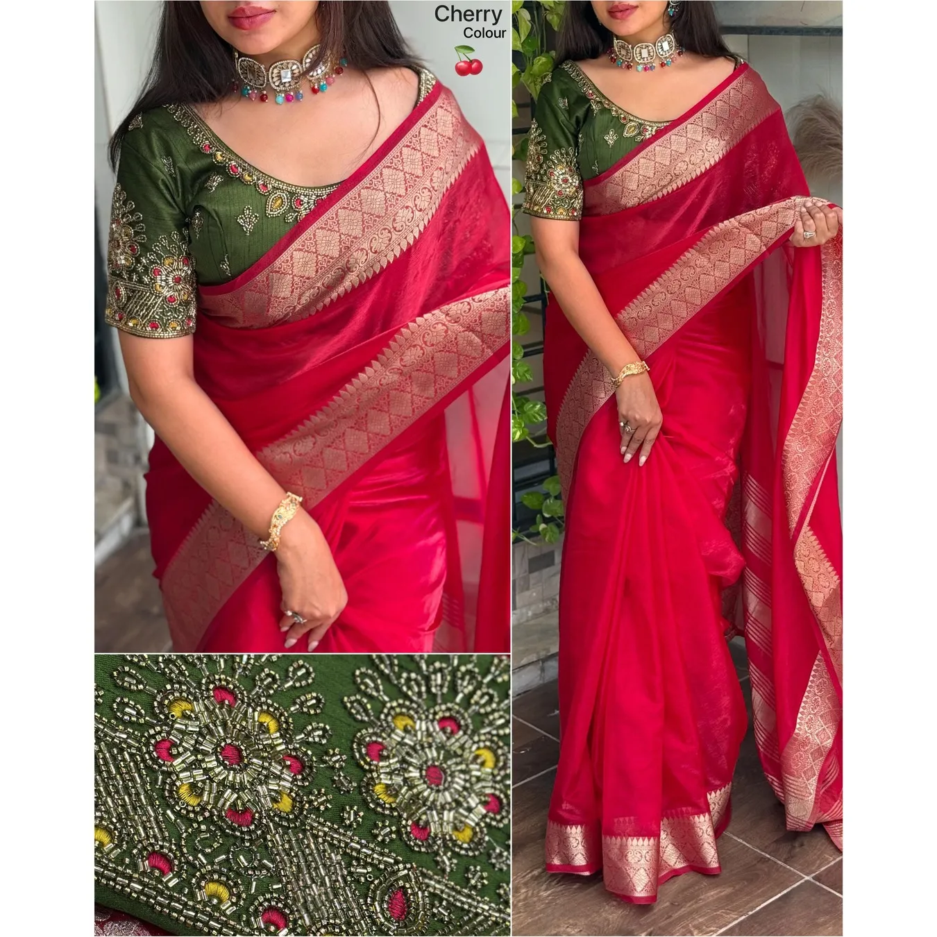 | Catalog Name | Princess Fandy Satin Saree with Handwork Blouse Set |