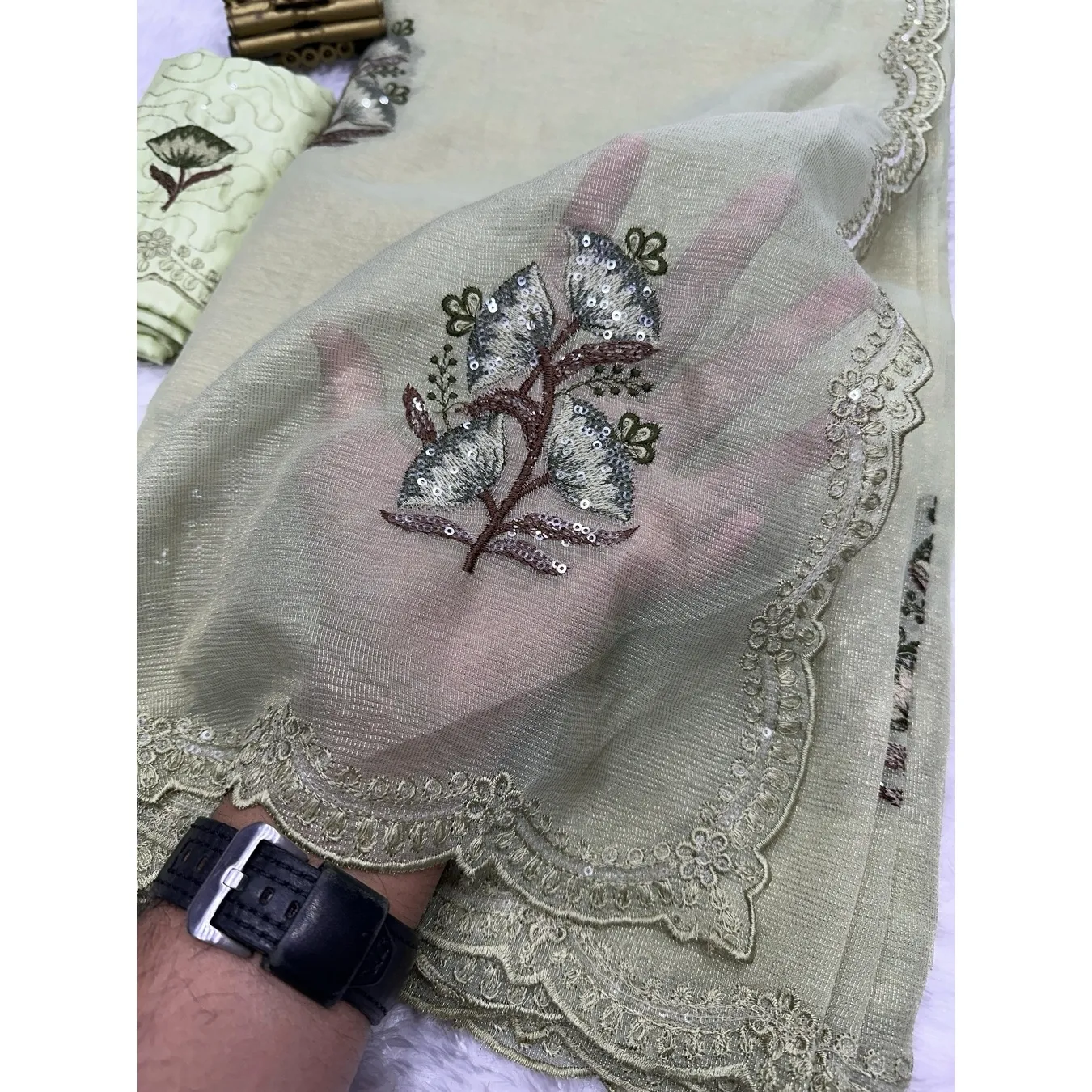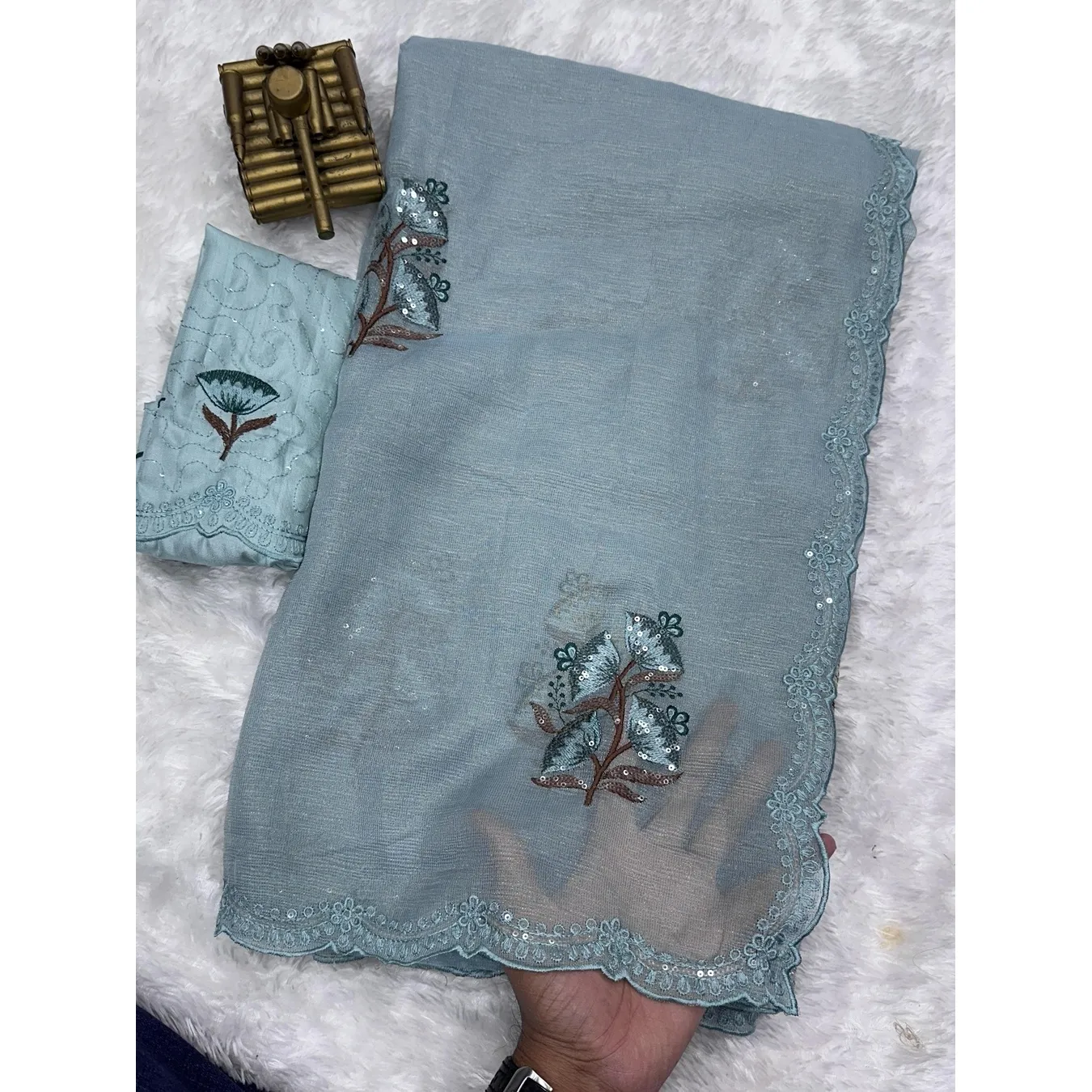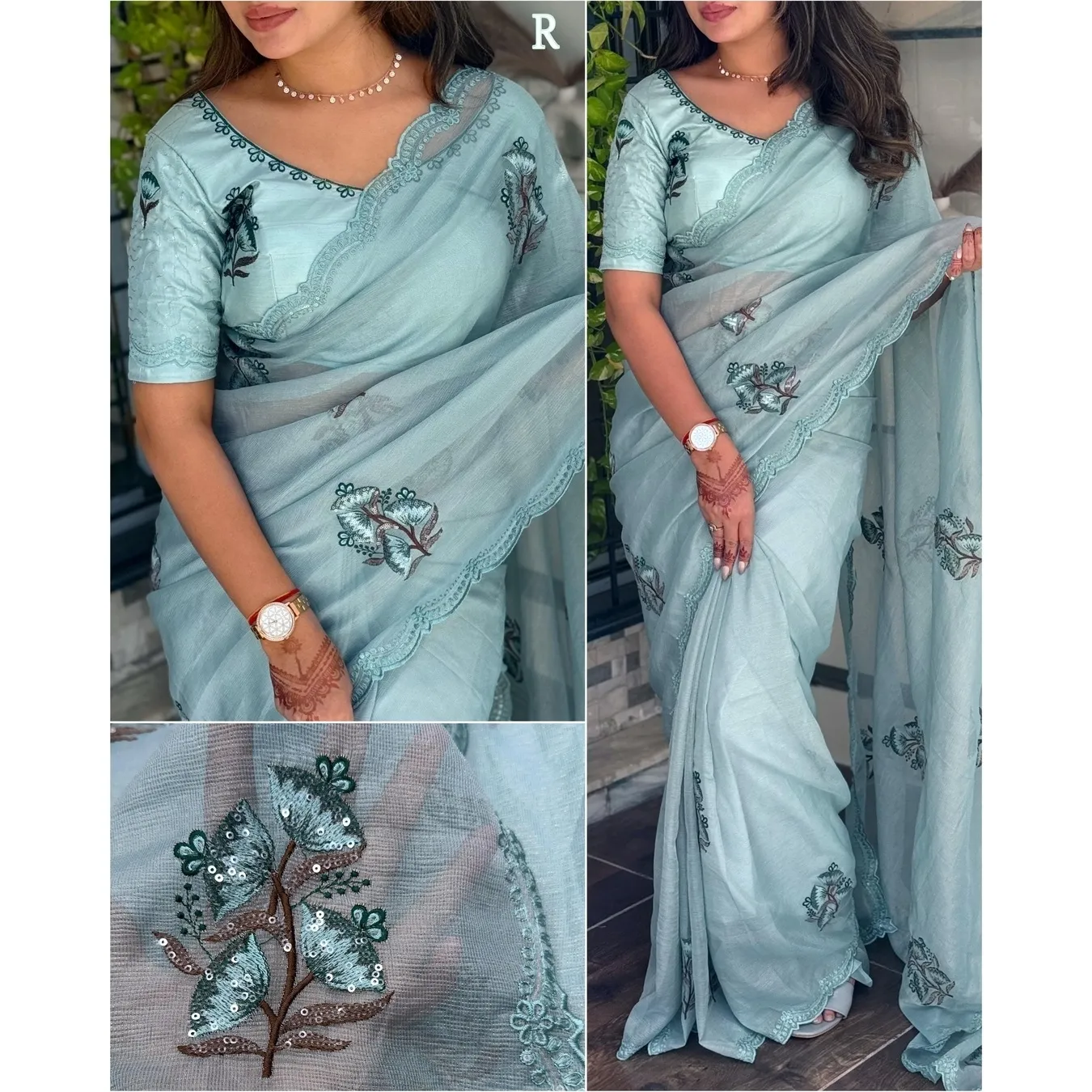 | Catalog Name | Tulsi Jute Organza Saree with Embroidery & Sequin Blouse |